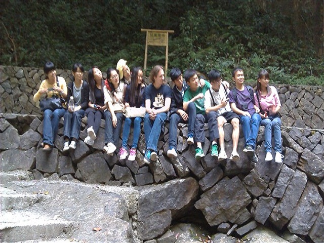 在相携登山项目中,一路上奇峰怪石、飞瀑流泉不断出现在同学们的视野中,引来同学们赞叹连连;偶尔一两只调皮的猴子来抢夺同学们手中的零食,更是引得大家捧腹大笑。尽管山道崎岖,同学们坚持相携前进,只听见欢声笑语不断。走过崎岖山道,集险峻与秀美于一身的“赤壁”让同学们连番惊叹,更是兴起了一轮轮拍照狂潮。各个班级也纷纷在这灵秀的飞瀑险壁前留下了合照。紧接着便是内容丰富多彩的小组活动,有烧烤、野炊、游戏等。而梁导的意外加入更使小组成员们兴奋异常。不少成员表示,简单的师生互动游戏不仅活跃了气氛更拉近了师生间的距离,让他感觉到同学们和梁导是师生更是密友。
