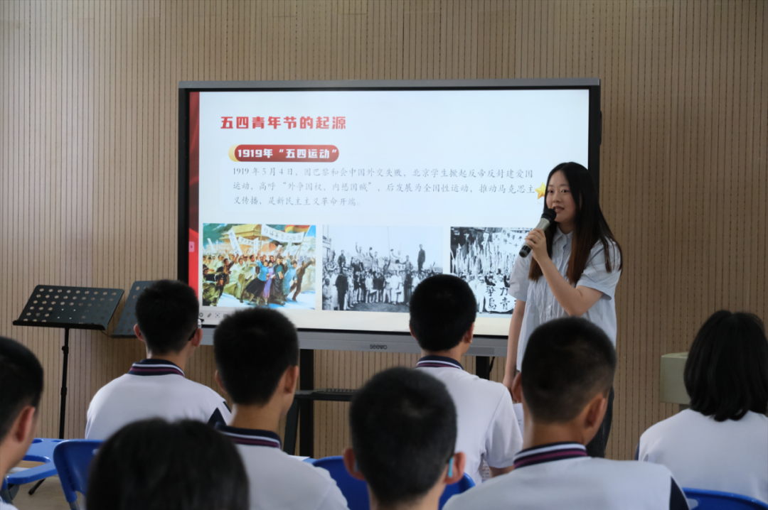 为传承和发扬五四精神,发挥“向阳挺膺计划”教学技能提升与多学科融合育人效能,5月8日,福建师范大学第27届研究生支教团在福建省福州第八中学开展了多学科融合五四精神思政课。本次思政课以“五四精神”为主线,整合思政、文学、音乐三门学科资源,由支教团成员邱绮心、潘峻毅、张文彬授课,为50多名学生共同呈现了一堂别具特色的多学科思政课堂。