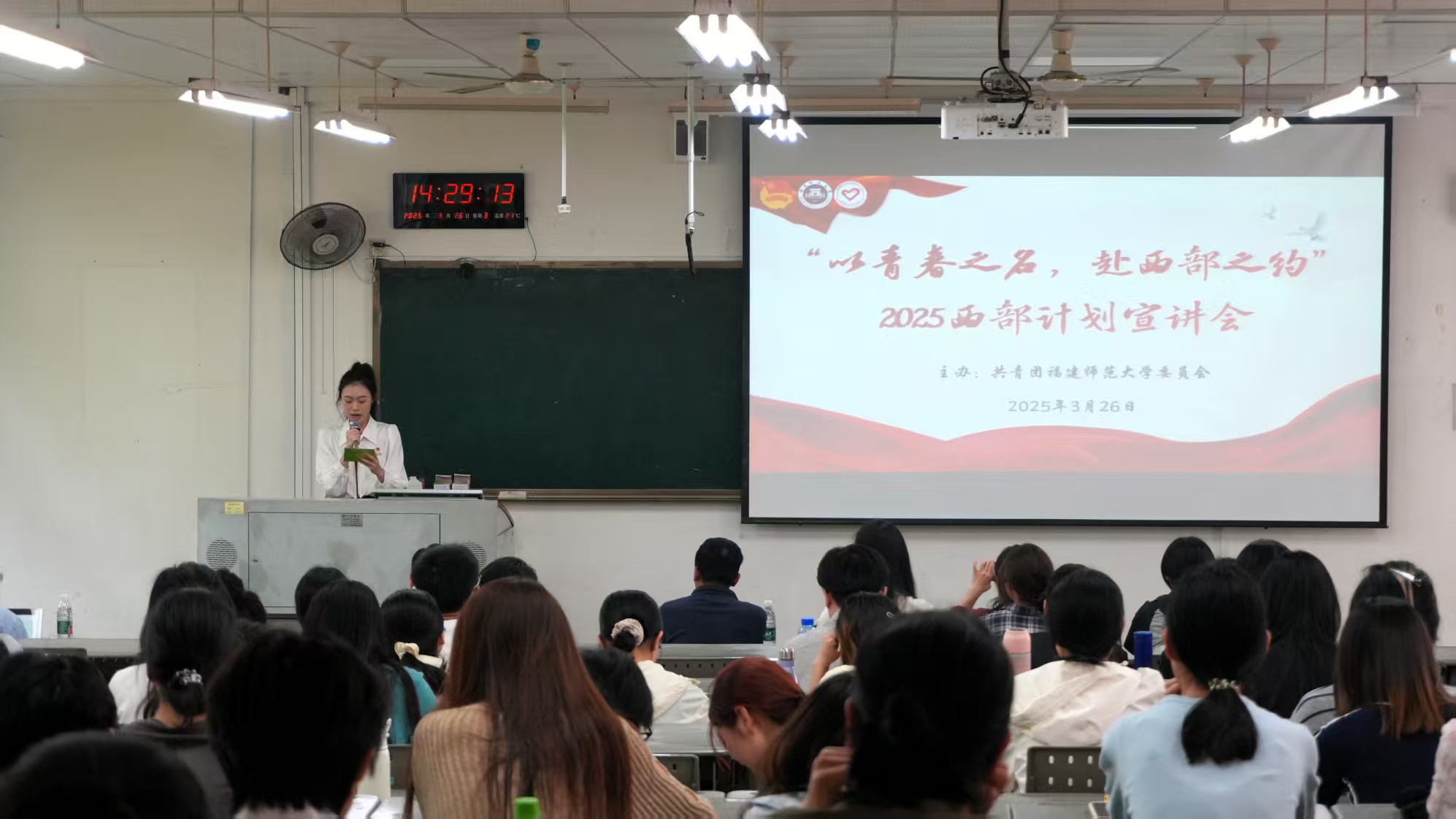 3月26日下午,福建师范大学团委于旗山校区立诚楼1-104教室举办“以青春之名,赴西部之约”2025年大学生志愿服务西部计划宣讲会,旨在引导青年学子响应国家号召,投身西部建设。