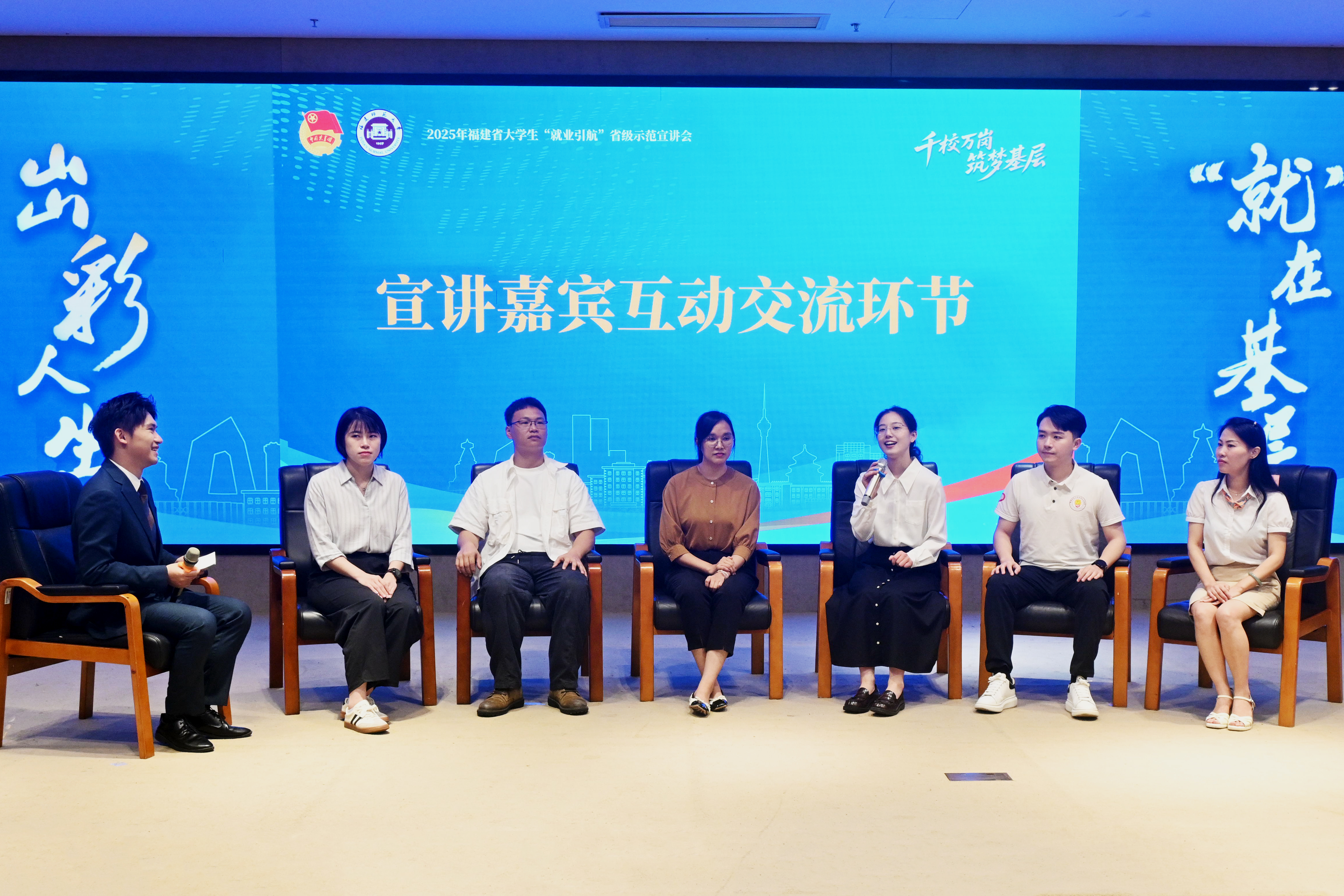 6月21日,“出彩人生 ‘就’在基层”2025年福建省大学生“就业引航”省级示范宣讲会在我校举行。活动由共青团福建省委和我校联合主办,福建青年人才开发中心和我校团委承办。团福建省委副书记魏玲,我校副校长吴剑锋,福建青年人才开发中心主任潘建宇、副主任王金龙,“就业引航”宣讲员和百余名师生代表参加活动。