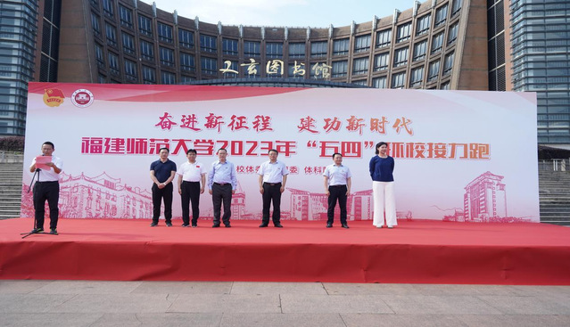 1、5 月 4 日下午,由校体委、校团委、体育科学学院主办的“奋 进新征程建功新时代”2023 年五四环校接力跑活动在旗山校区顺利举行。校党委书记潘玉腾、校长王长平、校党委副书记涂荣,校团委、体育科学学院负责人以及各学院代表队参加活动。在这个属于青年的节日里,同学们以奔跑的姿态抒发爱国情、砥砺报国志,展现出师大学子健康活泼的运动风采和蓬勃向上的精神风貌。