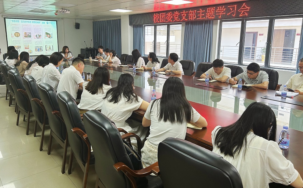 在交流分享环节,四位团干代表围绕即将开展的暑期社会实践,作了经验分享与交流。支部书记周延锋带领大家共同学习了《习近平关于调查研究论述摘编》一书“调查研究要注重实效、真正把情况摸实摸透”“开展调查研究就是走群众路线”等章节。他强调社会实践是全校青年学生开展好调查研究的重要方式和契机,要用好暑期这一黄金社会实践时期,引领青年学生真正深入基层,走进乡村,做足调查研究工作,把论文、项目写在祖国大地上。