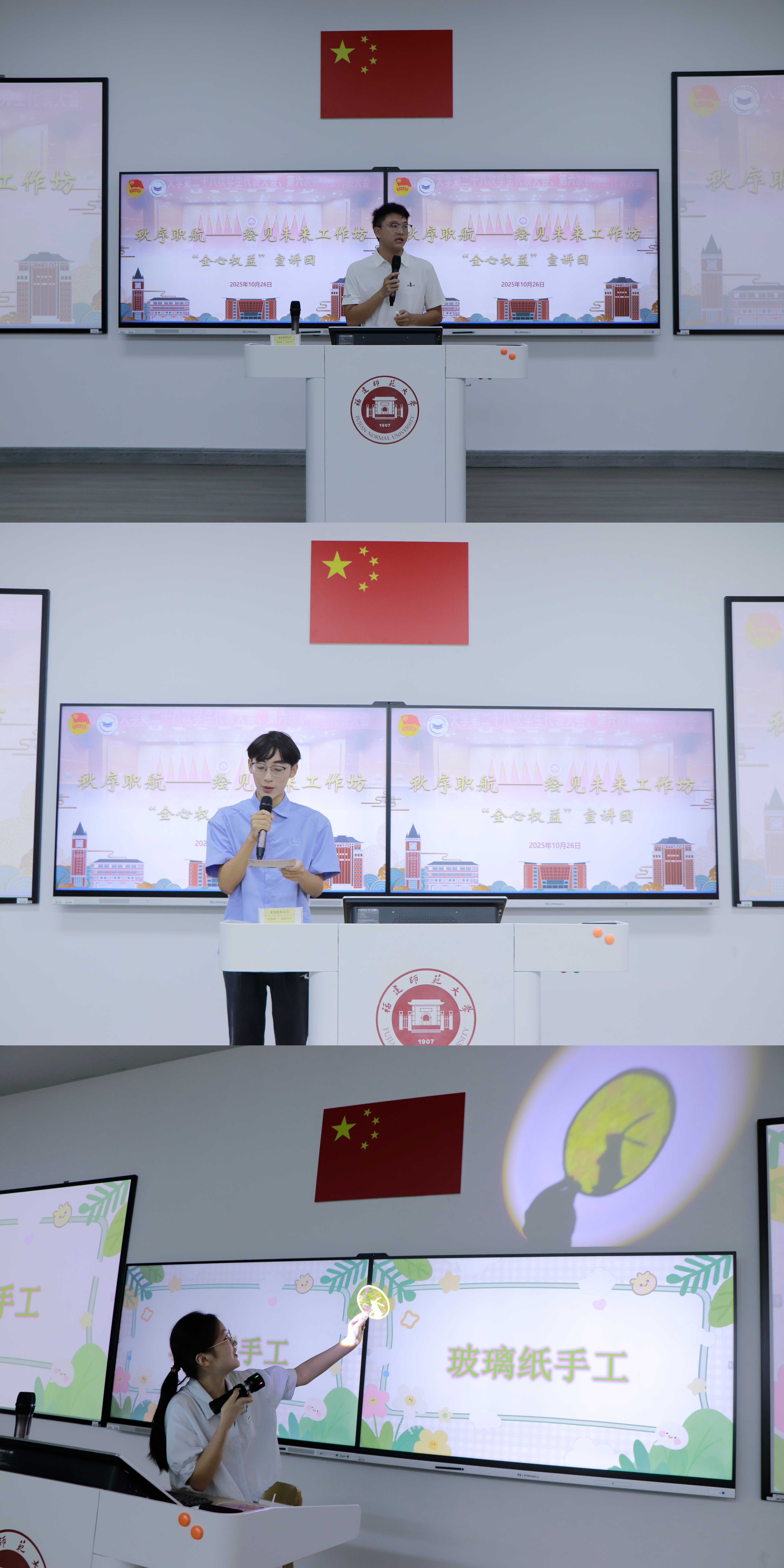 活动现场,我校新任辅导员陈文辉围绕“明晰职业方向”,讲解就业、考公考编、读博等路径的核心要求与准备策略,借互动问答缓解同学规划困惑。现场还设置玻璃画制作环节中,主持人引导“以色彩表情绪”理念、演示技巧,同学在轻柔音乐中创作,工作人员全程协助,尾声多位同学分享创作思路与感悟。同学们积极互动,反响热烈,普遍表示对未来发展有了新认知,情绪得到了疏解,收获满满。
