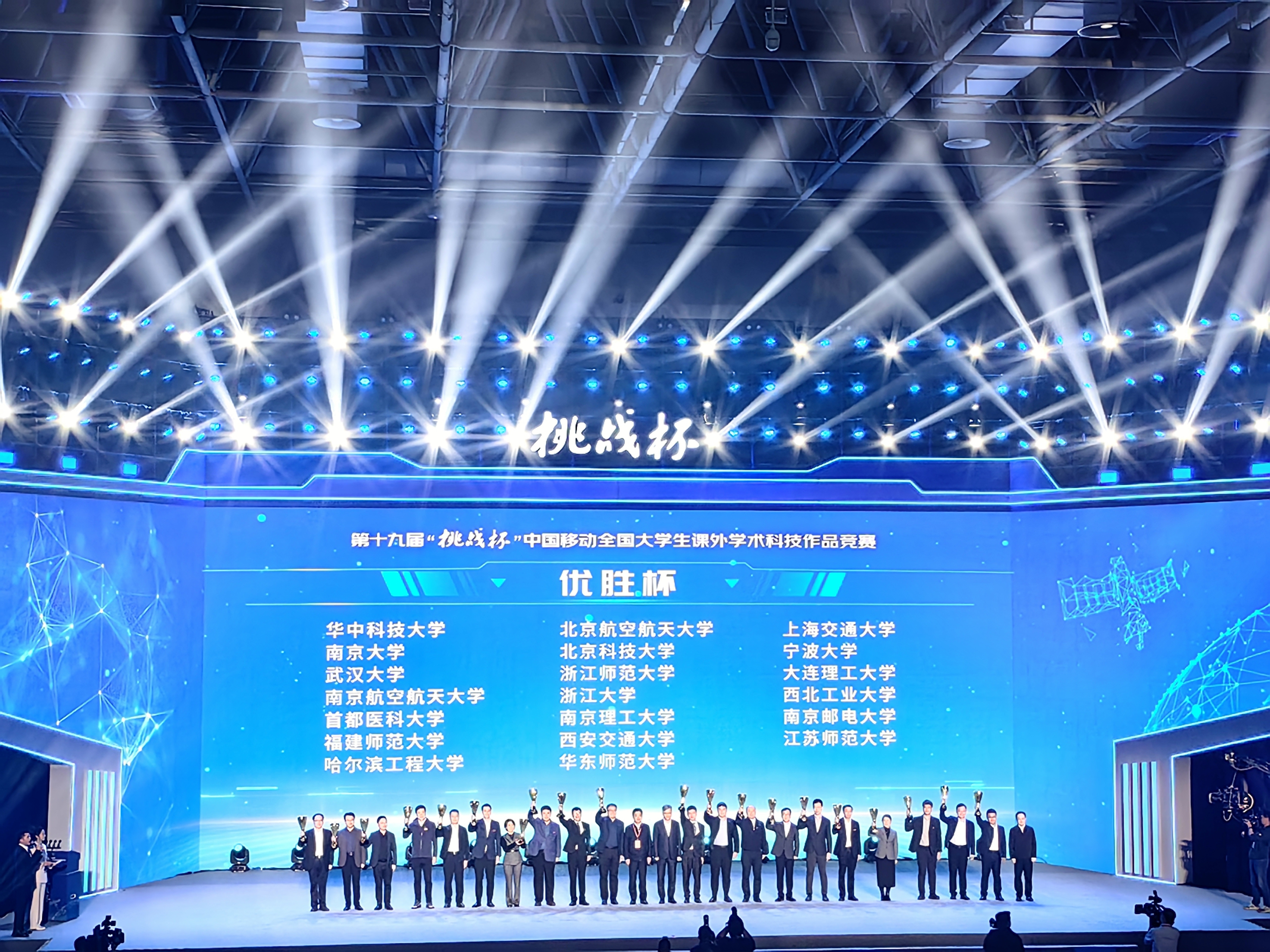 11月3日,由共青团中央、中国科协、教育部、中国社会科学院、中国工程院、全国学联、江苏省人民政府共同主办的第十九届“挑战杯”全国大学生课外学术科技作品竞赛终审决赛在南京大学落幕。我校共获主体赛特等奖2项、一等奖2项、二等奖1项、三等奖1项,“揭榜挂帅”专项赛一等奖1项、二等奖3项、三等奖4项、优胜奖2项,“人工智能+”专项赛应用赛二等奖1项;学校以团体总分位列全国高校第17名、全国师范院校第2名、全省高校第1名的优异成绩捧得“优胜杯”。