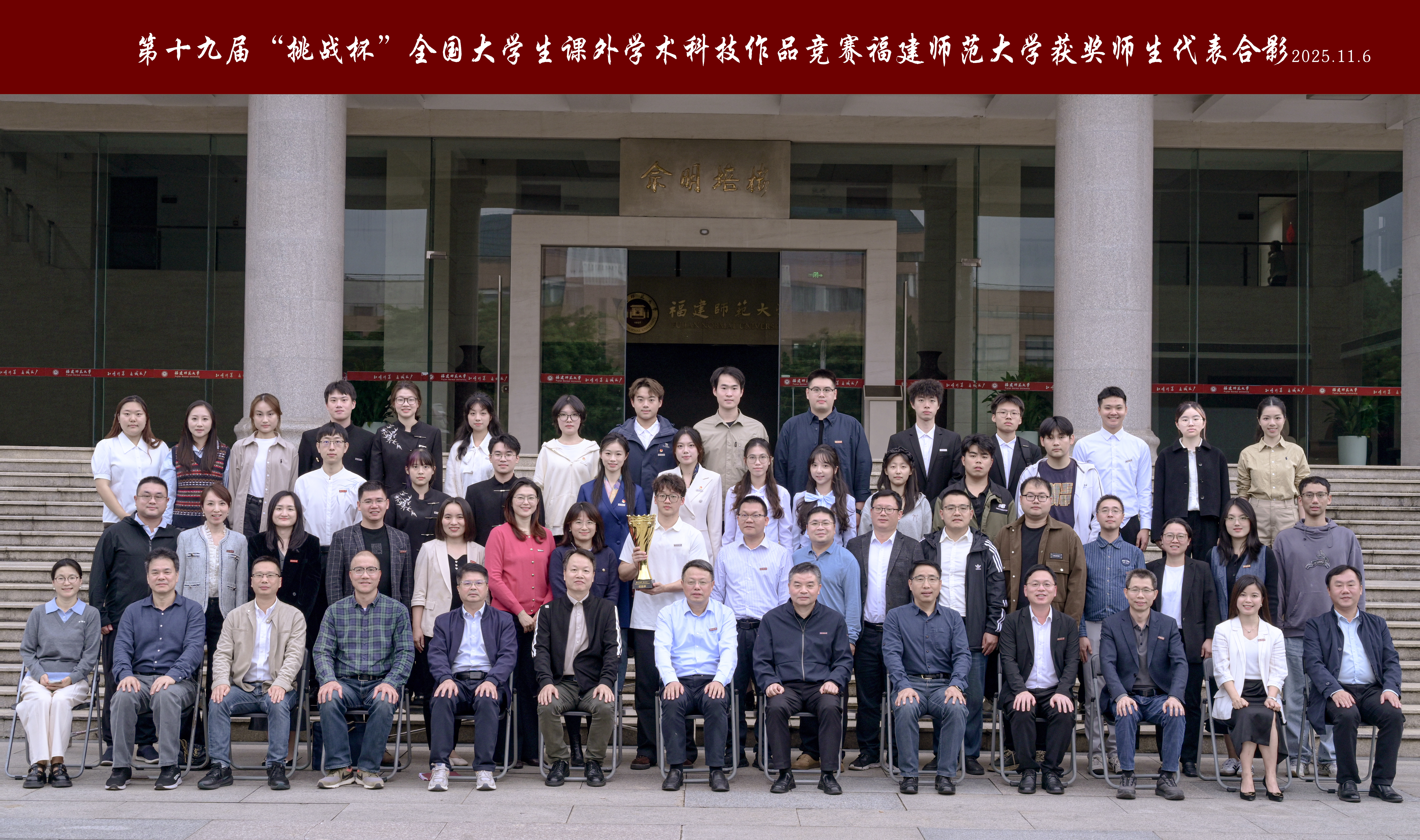 潘玉腾向获奖师生表示热烈祝贺,向为赛事组织、项目培育贡献力量的部门和学院表示衷心感谢。他指出,学校党委高度重视“挑战杯”赛事组织,形成了具有师大特色的科创育人经验,学校坚持“扎根国家需求”的导向,构建“跨学科协同”的生态,秉持“久久为功”的耐心,结出优异的科创育人硕果。