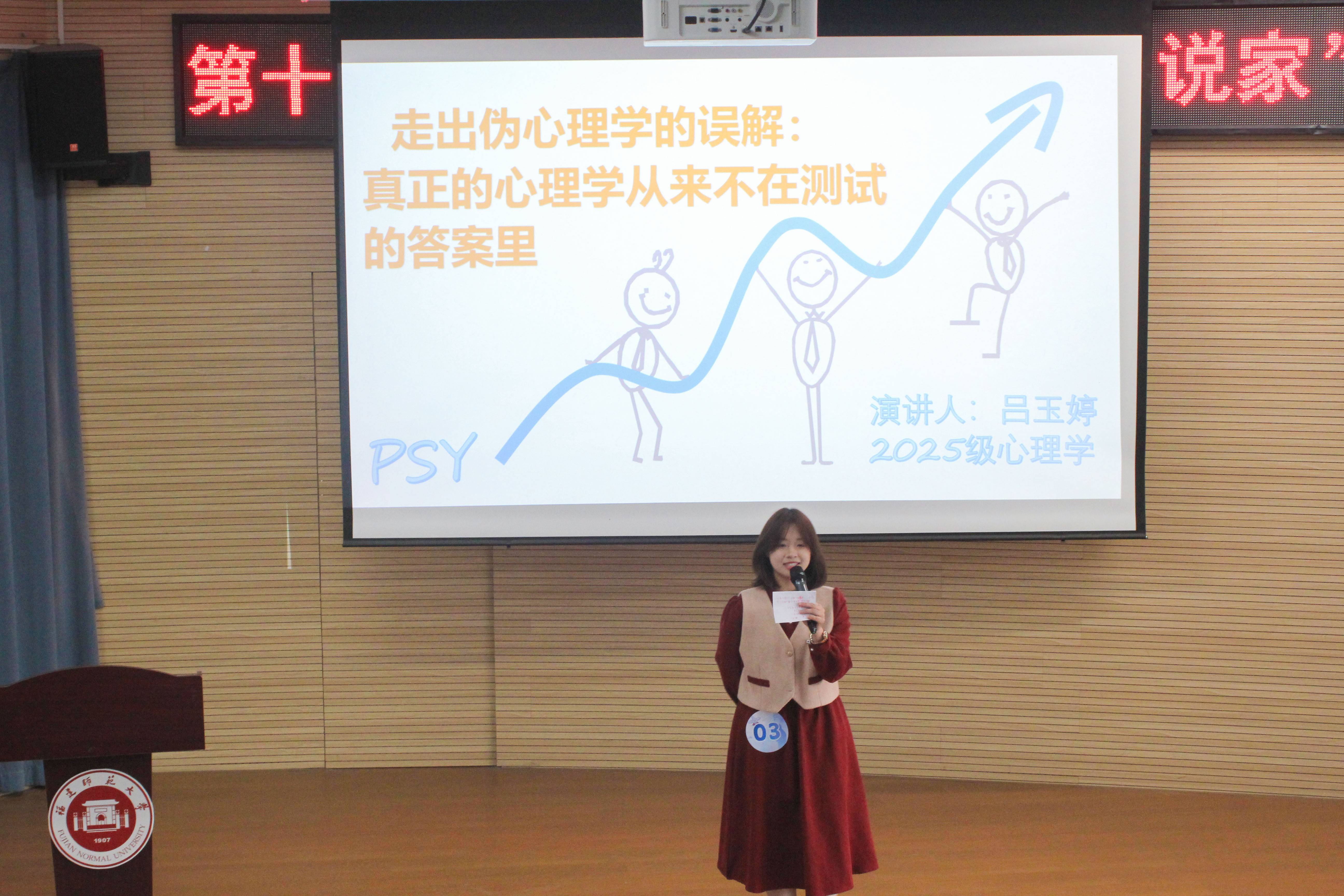 “百家讲坛”赛道的4位选手以专业视角热议时代话题。康蕾剖析会展产业的经济联动逻辑,展现敏锐的行业洞察;郑宏聚焦AI时代外语学习价值,探讨外语专业学生的核心竞争力;吕玉婷拆解心理学认知误区,科普学科科学本质;徐则瑶围绕幼儿智育展开思考,提出理论与体验融合的教育思路。