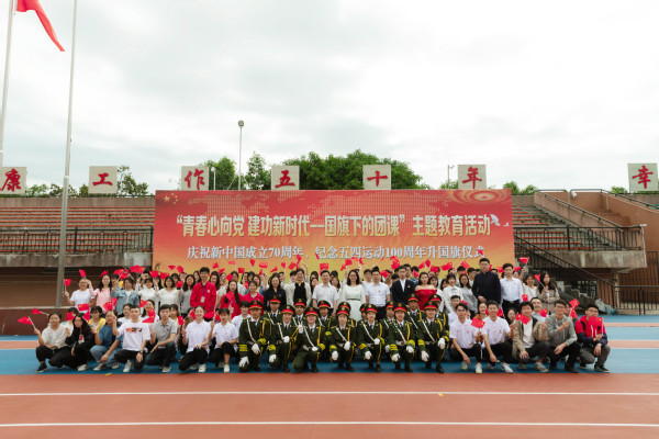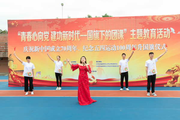 为纪念五四运动100周年、庆祝新中国成立70周年,5月4日青年节当天上午,我校在旗山校区东区田径场举行“青春心向党 建功新时代--国旗下的团课”主题教育活动暨庆祝新中国成立70周年、纪念五四运动100周年升国旗仪式。校团委、法学院负责同志,校学生会、经济学院、法学院、传播学院、音乐学院学生代表参加。