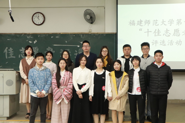 决赛共分为选手演讲、评委提问及知识竞答三个部分。比赛过程中,选手们共分为四组依次上台汇报。有一直致力于残疾人体育服务的组织者,有把支教融入大学生活的参与者,也有带领整个志愿服务团队持续前行的领导者,现场精彩的演讲及回答赢得了在场观众的阵阵掌声,随后展开的志愿知识抢答环节,把现场的气氛推向高潮。最终,体育科学学院易婷婷、教育学院李静、体育科学学院赵立卓、数学与信息学院周梦洁、地理科学学院林雅芬、生命科学学院许婉棋、社会历史学院张齐真、外国语学院陈泓晔、社会历史学院张凡、文学院刘玉等十位同学被授予“十佳志愿者”荣誉称号。