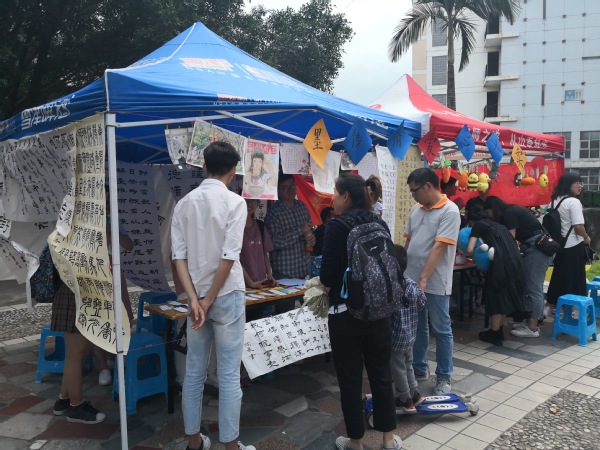 据采访,“墨传情爱心义卖”特色摊位的工作人员介绍称,他们义卖的书画作品都是由我校墨韵书画协会的社员们所创作的,本次爱心义卖的收入将会全部捐赠给福州市第二福利院,用来添置孩子们夏季的衣物。