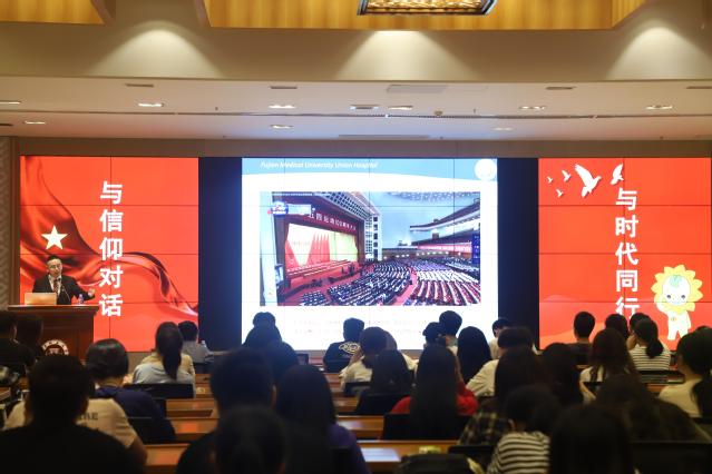 5月18日上午,福建省青年讲师团成员,福建医科大学附属协和医院胃外科副主任医师李平副教授走进校园,在旗山校区宏达厅开展题为《与信仰对话:传承五四精神,践行青春梦想》的宣讲活动,近200位师生代表在现场聆听了宣讲。