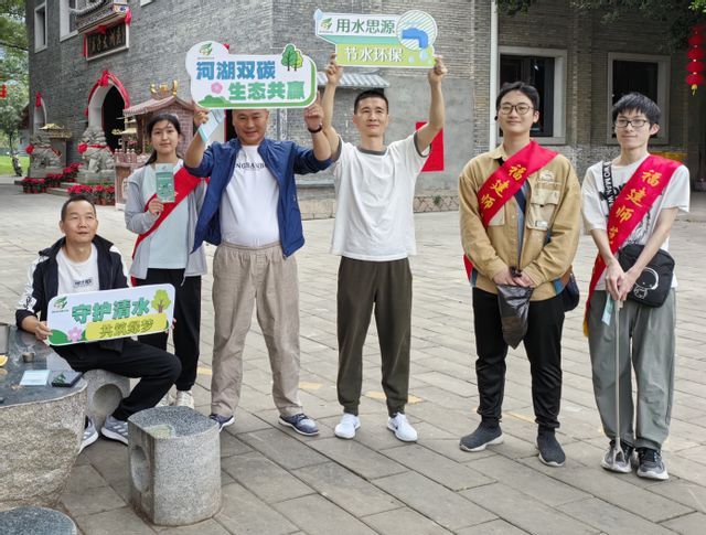 2、10月30日下午,环境与资源学院、碳中和现代产业学院联合绿意环保协会前往旗山湖公园开展“守护旗山湖,争当护水卫士”生态环境科普活动。志愿者们清理公园绿化带垃圾并分类投放。另外一支小分队通过发放宣传手册普及护河知识,促进生态保护知识的传播。本次活动有效地提升了社会公众对于水资源保护重要性的认识与关注度,为城市生态建设添砖加瓦。