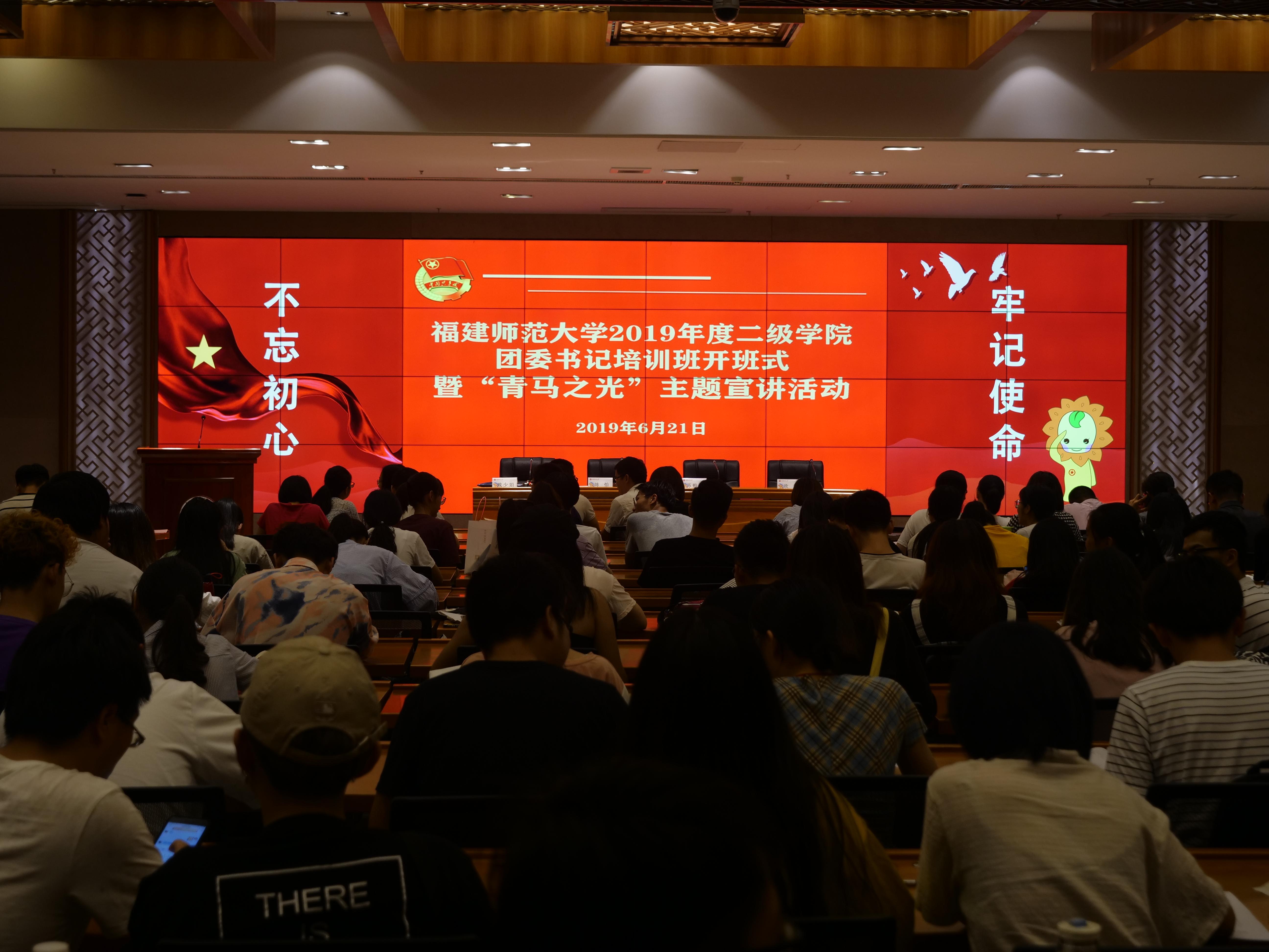 6月22日下午,由校党委组织部、党校、校团委联合开展的2019年度二级学院团委书记培训班开班仪式在旗山校区宏达厅举行。团省委组织部部长陈怡,福建省教育团工委书记苏贻堆,校党委组织部部长欧榕、校团委副书记戴少娟,以及参训团干、青年学生代表近200人参加。