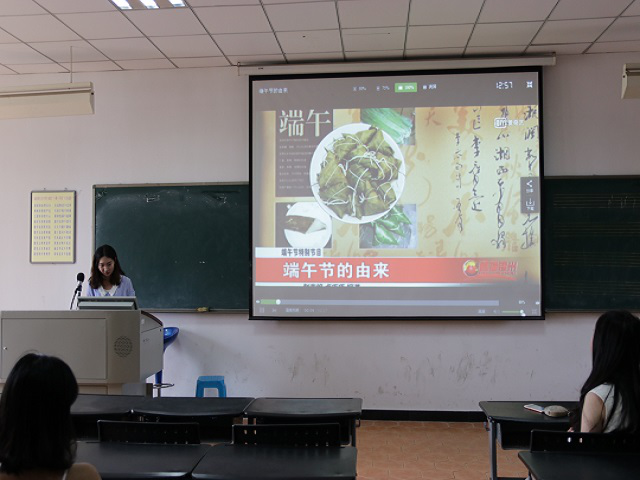 比赛规定PPT须围绕“我们的节日·端午”为主题,由个人或团队参与合作完成,并派出一名代表进行介绍和展示。本次比赛共有来自各年级的八个组参与,选手们各显所长,从不同的角度向大家展示了丰富多彩的端午节。其中,有借用形态各异的粽子作为开篇,吸引在场观众兴趣的;有趣说家乡龙舟比赛非凡场面,联系家乡习俗进行解说展示的;还有分享南北方粽馅差异的;更有慷慨激昂,抒发自己对端午节由来的真挚感情的……经过激烈的角逐,16级陈静婧同学以制作精美的PPT和生动感人的解说获得了第一名。比赛在浓厚的节日氛围中落下了帷幕。