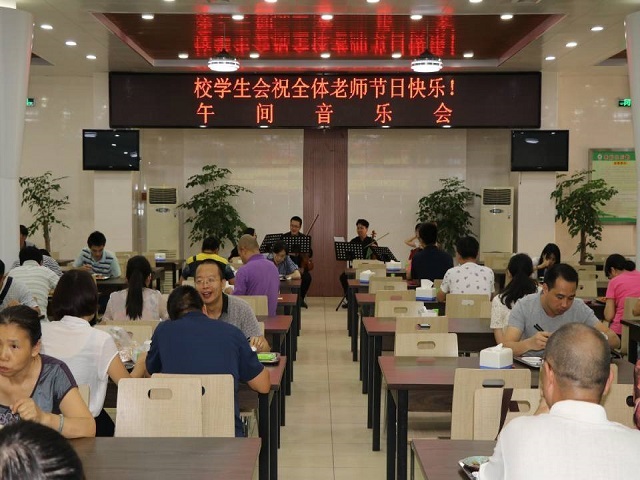 9月13日,校学生会在旗山校区教职工食堂开展了主题为“巧手献恩师·午间音乐会”的活动,通过现场制作并赠送立体贺卡、组织午间音乐会等方式为老师们献上节日的祝福。精心制作的贺卡,悦耳动听的演奏,让前来就餐的老师在繁忙的教学工作后,洗去了疲惫,放松了心情。