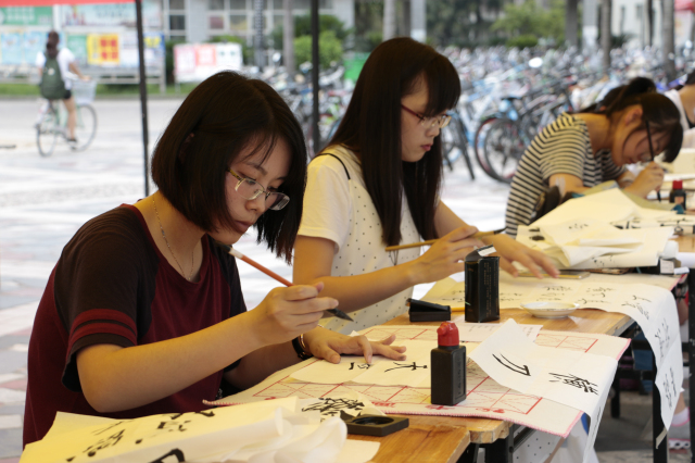 5月17日,由校学生会承办的三笔字大赛,在共青团广场和笃行楼教室101-106顺利举行。