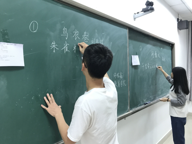 此次比赛包括毛笔、钢笔和粉笔三个组别。在毛笔组中,同学们灵活运用多种字体进行书写,绽放多样芳华:典雅返朴的小篆,婉转行云的行楷,古朴内敛的隶书,端庄大气的楷体。在钢笔组中,同学们不时埋头疾书,偶尔又凝神思考、细细端详,陡然下笔时又笔锋流畅。粉笔组的参赛同学亦是笔笔细致,或娟秀或豪放的字迹落于黑板,别样的赏心悦目。最终,来自文学院的郭芳蓉斩获了粉笔组的第一,材料科学与工程学院的郑楷聪摘得毛笔组桂冠,硬笔组第一则是公共管理学院的李思涵。