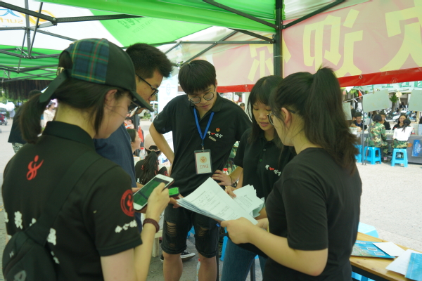 “学姐好,我想了解一下……”,帐篷下,新同学和学长学姐们聊得比正午的太阳还要“火热”。“五大中心,五个平台,五种服务,一个精神”,学生会的工作人员为新生们耐心介绍着五个中心的日常,让其更加深入地了解学生工作的内容和意义。