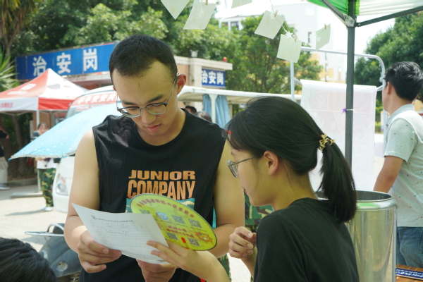 “同学,喝杯凉茶解解暑吧“,在桂苑门口,学生会的工作人员向过路刚结束军训的新生递上了备好的凉茶,贴心的服务和暖心的笑容满是学生会的“人情味”。此外,和中秋有关的“博饼”活动,也让不少同学乐在其中。