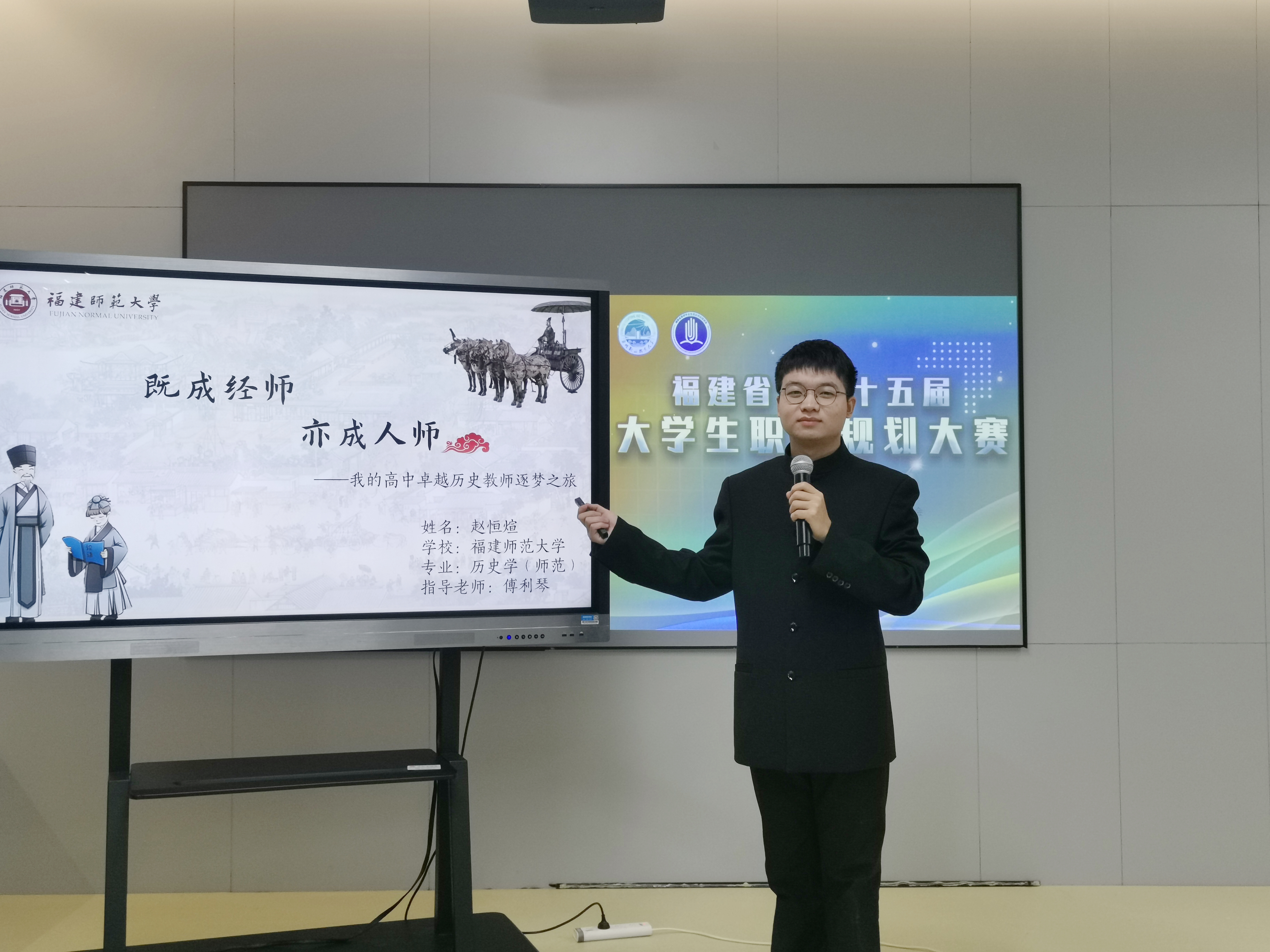 近日,由福建省教育厅主办的第十五届福建省大学生职业规划大赛决赛举办。经过激烈的角逐,我校社会历史学院赵恒煊同学《既成经师 亦成人师》(指导老师:傅利琴)获本科组一等奖,传播学院周涵同学《声声不息 周容涵养》(指导老师:纪增长)获本科组二等奖。社会历史学院傅利琴老师获“优秀指导教师”称号,学校获“优秀组织奖”。我校选手结合行业前景、所学专业和自身实际,通过现场陈述和答辩,充分展示了他们的职业目标、发展路径和职业蓝图,展示了良好的形象。
