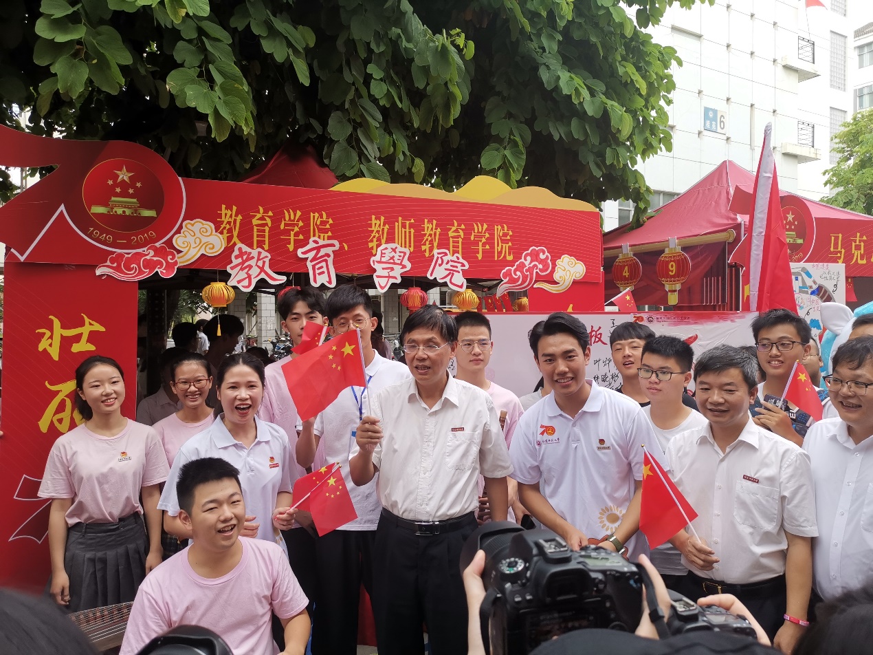 校领导李宝银、叶燊、涂荣,学校办公室、宣传部、学生工作部(处)、保卫处、后勤管理处、校团委等有关单位负责人、各学院党政领导和留校师生一同参加游园活动、观看师生文艺汇演、收看央视直播的庆祝中华人民共和国成立70周年大会、盛大阅兵活动。