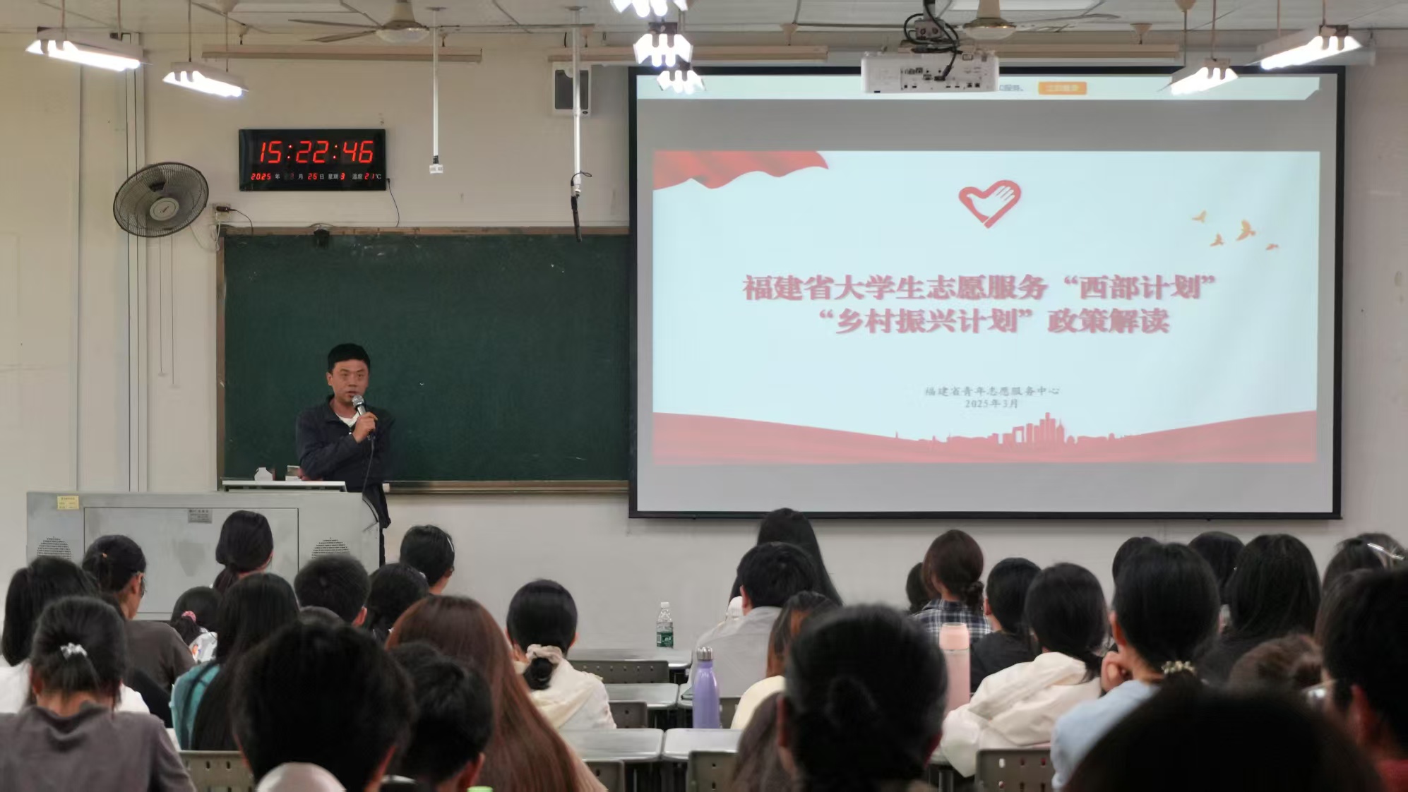 2、3月26日,校团委于旗山校区立诚楼1-104教室举办“以青春之名,赴西部之约”2025年大学生志愿服务西部计划宣讲会,旨在引导青年学子响应国家号召,投身西部建设。会上,三位往届西部计划优秀志愿者代表分享服务经历。福建省青年志愿者协会秘书长陈李聪老师详细解读西部计划的招募信息和报名流程并为同学们答疑解惑。此次宣讲会让同学们对西部计划有更深入的了解,引导更多青年学子把个人理想融入国家发展。