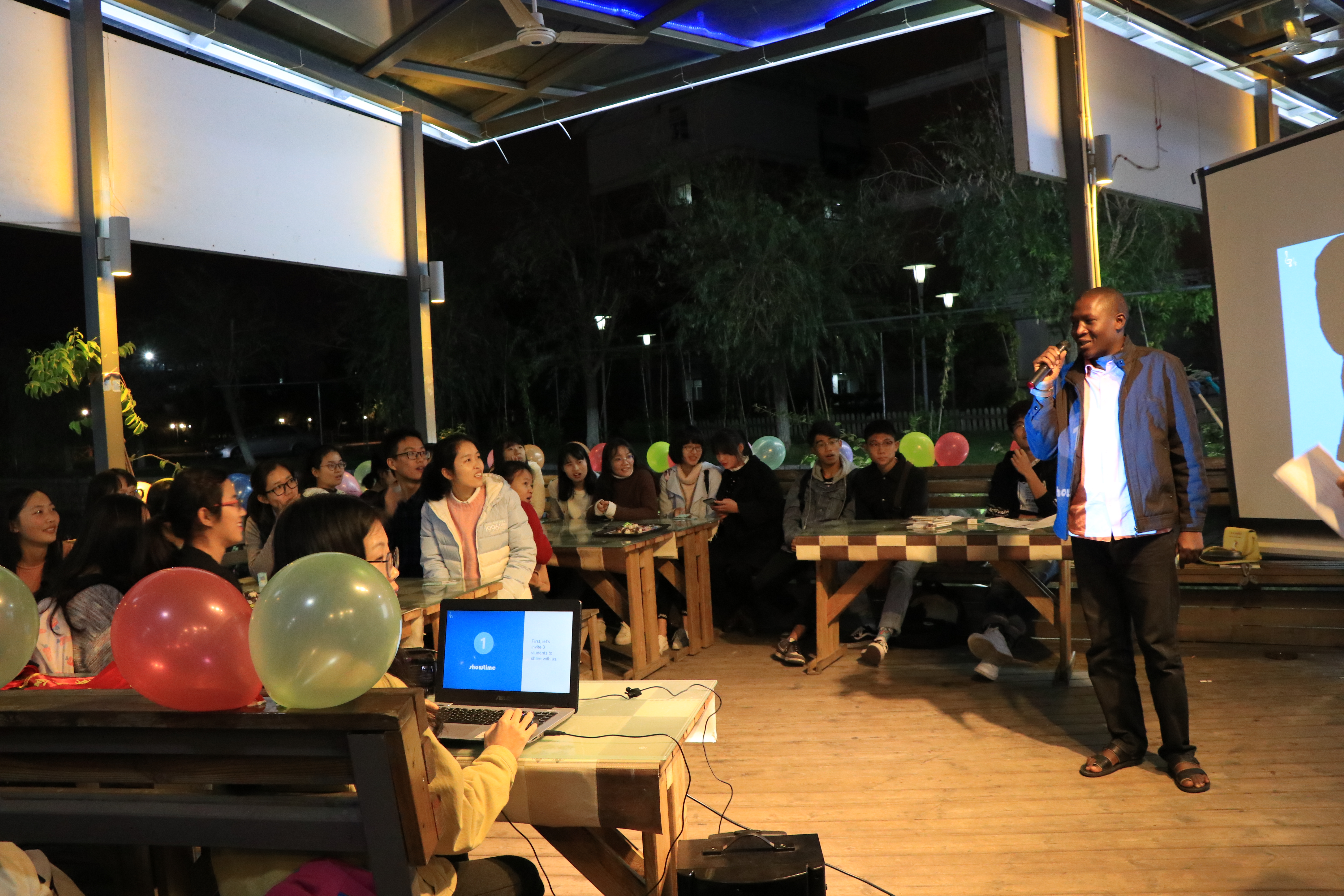 有趣的小组游戏过后,活动的氛围变得更加热烈,同学们初见时的拘束消解了。来自经院同学的一首“光辉岁月”更是点燃了在场同学的热情,赢得满场掌声。接下来的雅思分享课环节同样精彩,来自环球教育的外教Chris以“运动与锻炼”为主题,为在场的同学们普及了关于各项运动的相关知识,并辨析了“be used to doing”(习惯于做某事)和“used to do ”(过去常常做某事)的区别,并向同学们提出了相应的问题,“运动与锻炼是否有区别?”“你和你最喜欢的运动是否有什么有趣的故事?”等等。在Chris老师“I need you to think and talk”(我需要你思考并且说出来)的鼓励下,同学们积极回答问题、现场交流气氛十分浓厚。