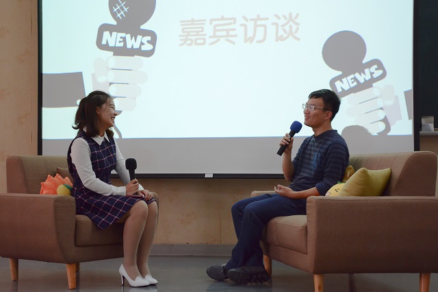 活动开始,通过一段视频,总结了去年学生记者节的概况。随后,龙敏老师化身超级演说家,阐述了如何在现实与情怀间安放新闻理想。他围绕“新闻写作:用文字来做一些好玩的事”的主题,以圈内人的视角向大家介绍了国内各主流媒体的不同风格。他还结合自身经历,针对非虚构写作,分享了诸多如“于无声处见惊雷”的技巧感悟,发人深省。而就同学们普遍关心的校园新闻,龙敏老师也有自己独到的见解,他认为“多读书,多实践”是校园记者的必由之道。随后的嘉宾访谈与提问环节,面对同学们“新媒体爆炸下何为好新闻”、“专业对选择记者职业的影响”等问题,龙敏老师一一作答,引来现场阵阵掌声。