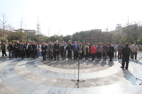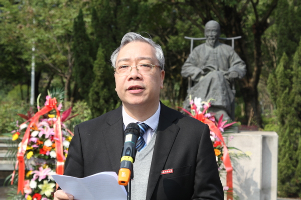 4月1日上午,学校在旗山校区宝琛广场举行了2017年“我们的节日·清明”主题活动,缅怀学校创始人陈宝琛先生。校领导林和平、潘玉腾,学校办公室、宣传部(文明办)、机关党委、学工部、研工部、校工会、校团委、校友会负责人,陈宝琛先生曾孙陈供、陈光明,五世孙陈宁旭,螺江陈氏宗祠管委会代表、螺洲陈宝琛教育基金会代表及师生代表共300人参加了活动。活动由校党委副书记潘玉腾主持。