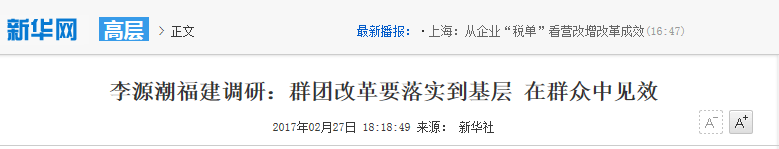 [新华网]李源潮福建调研:群团改革要落实到基层在群众中见效