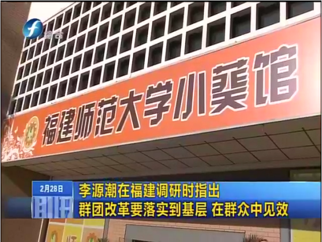 2月28日《福建新闻联播》以《李源潮在福建调研:群团改革要落实到基层 在群众中见效》为题 ,报道中共中央政治局委员、国家副主席李源潮一行到我校小葵馆考察调研“网上共青团”建设工作情况,报道如下: