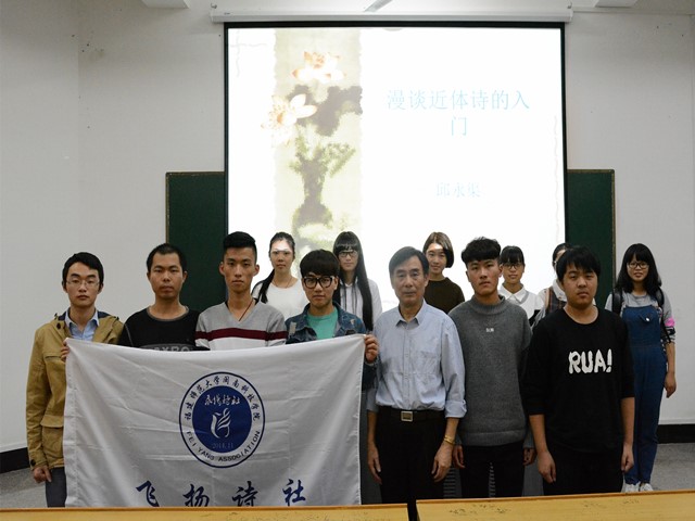 ★12月21日,由闽南科技学院学生社团联合会飞扬诗社主办的“闽科杯”首届“诗话闽科”近体诗大赛主题讲座于美林校区展开。院长邱永渠就近体诗的四大要素、近体诗的变格、关于近体诗的硬伤及个人写作中的经历及想法进行解说,鼓励同学们多动笔、多写诗。