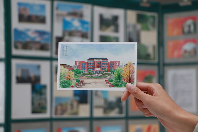 叶惟华教授根据不同的集邮板块为前来观赏邮票的老师和同学做解说。在集邮展示栏的旁边摆放着福建师范大学自制的明信片,同学们挑选自己喜欢的明信片并盖上邮戳和集邮协会的会章。这些明信片将由集邮与收藏协会的工作人员统一寄出。