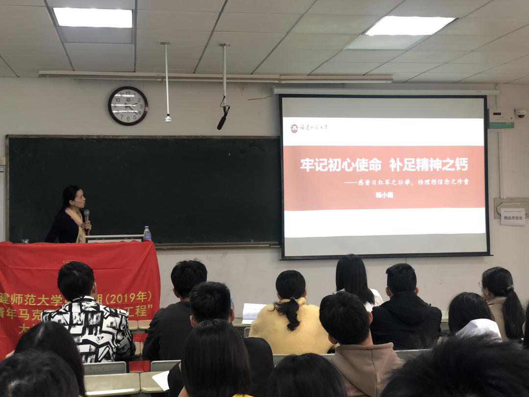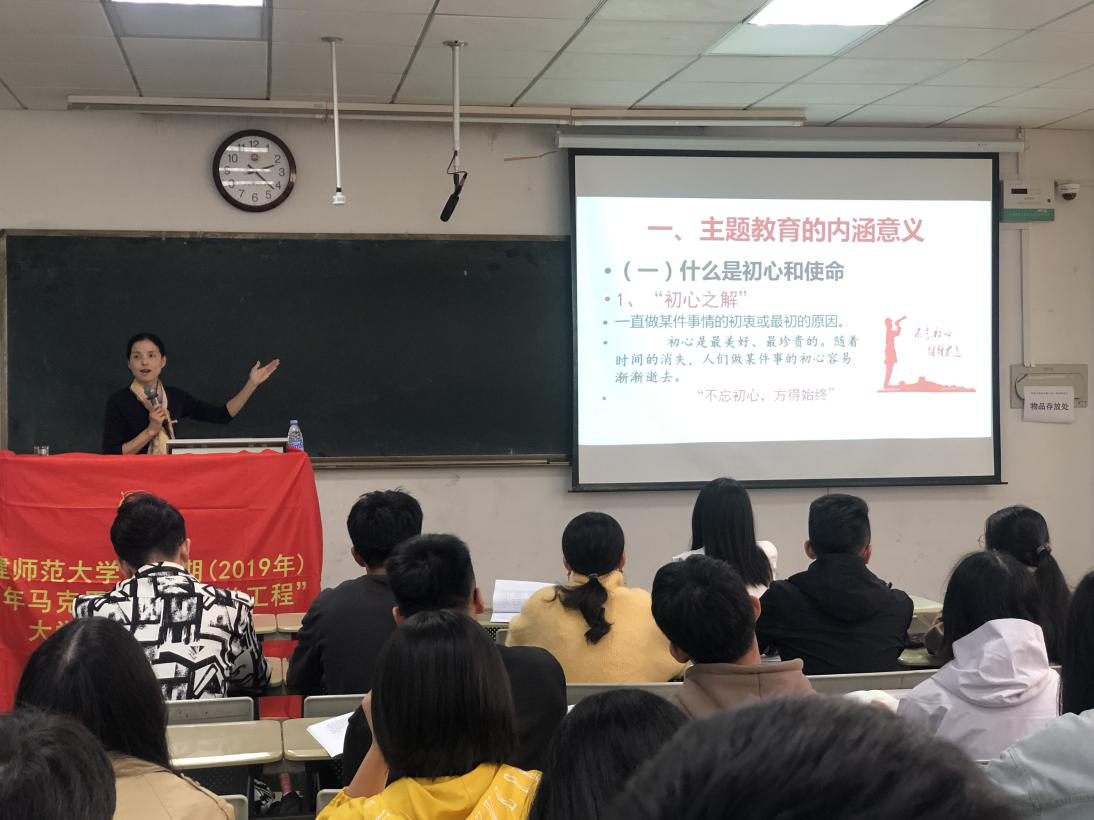 11月16日下午,校第19期(2019年)“青年马克思主义者培养工程”大学生骨干培训班在笃行1-203进行青马课程第二讲。本次课程由马克思主义学院教研部主任、副教授、硕士生导师杨小霞老师讲授,主题为《牢记初心使命 ,补足精神之钙》。校学生会副主席张相涵主持。