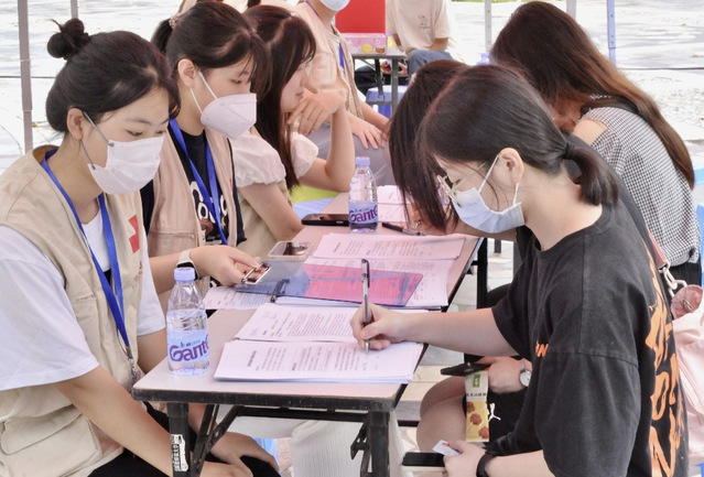 本次活动共投放两辆献血车,设置了多个点位,分别为填表区、体检初筛区、献血区、休息区、活动区、游戏区及领奖区。献血过程中,献血者在校红十字会志愿者的耐心引导以及省血液中心的医疗保障团队的专业服务下,顺利完成献血。献血者和受表彰的“献血达人”在签名墙上陆续签名打卡、合影留念。