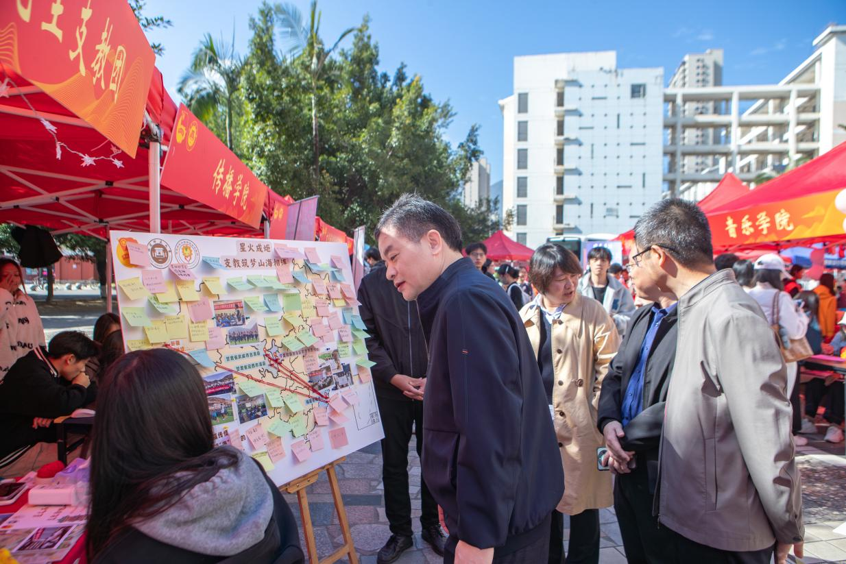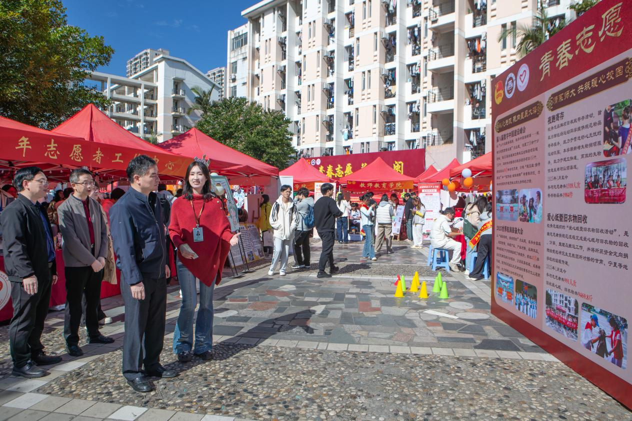 为迎接第40个“国际志愿者日”,深入学习贯彻党的二十四届全会精神,大力弘扬“奉献、友爱、互助、进步”的志愿服务精神,11月30日,由共青团福建师范大学委员会主办、校青年志愿者工作中心承办的我校第十八届志愿服务项目成果展在旗山校区共青团广场顺利举行,本次活动主题为“青春志愿,益暖八闽”。校党委副书记吴剑锋、校团委书记周延锋莅临参观指导。