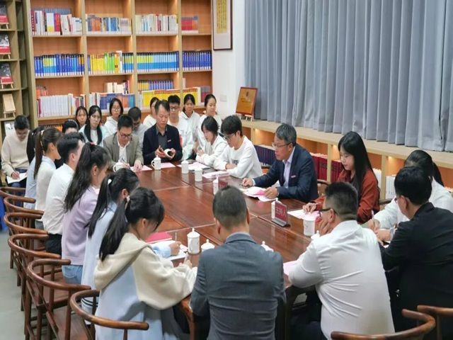 5、近日,马克思主义学院于李建平书屋举办校领导联系班级、社团交流座谈会,校党委书记潘玉腾出席,相关职能部门负责人、辅导员及本科2025级马克思主义理论类二班、校研习社学生代表参会。会上,学生代表汇报专业学习、社会实践等情况,分享党的二十届四中全会精神学习心得,还就团学活动彰显学科魅力等问题提问,潘玉腾逐一解答并提出青年学习该精神要“有魂、有方、有力”的要求。此次活动搭建了校生沟通桥梁,深化了学子对会议精神的理解,激励大家将理论学习与成长实践深度融合。