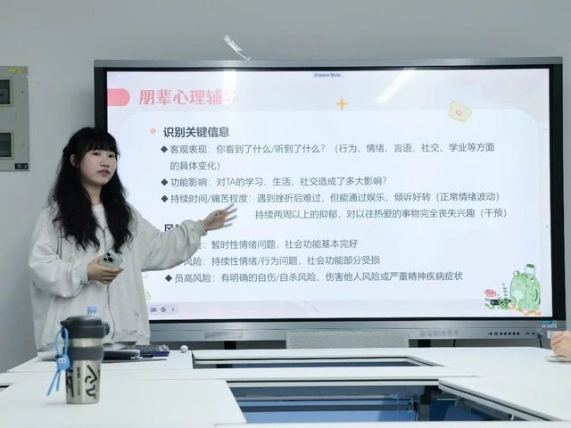 6、近日,地理科学学院、碳中和未来技术学院于16号科研楼1015会议室举办秋季心理健康交流沙龙。活动由研究生辅导员涂金益主持,心理兼职辅导员戴哲敏与2025级12名班级心理健康宣传员参与。涂金益强调朋辈心理互助的重要性,戴哲敏围绕辅导方式与技巧展开专题分享,结合案例讲解核心技能与角色边界,并强调自我关怀的重要性。在互动环节中,同学们围绕人际交往、学业压力等问题提问,戴哲敏给予细致回应。此次活动提升了学生朋辈心理辅导能力,营造了关注心理健康的良好氛围,为学院心理健康教育工作夯实基础。