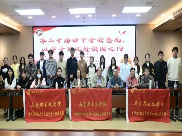 4、近日,马克思主义学院本科2023级、2024级马克思主义理论团支部与2024级思想政治教育1班团支部于人文楼2-113学术报告厅联合开展“学悟全会精神,展望新征程”主题团日活动。活动中,全体成员共同学习党的二十届四中全会公报及“十五五”规划建议。蔡华杰强调科学规划对个人成长的重要性,勉励成员做好系统规划;陈志军结合“凡事预则立”等古训,阐释五年规划与中华优秀传统文化的契合,强调未雨绸缪的智慧。