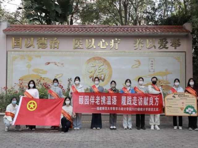 5、近日,数学与统计学院2023级统计学班团支部赴福州市多个区县养老机构,开展“颐园伴老携温语,履践走访献良方”主题调研活动。调研小组走进多家养老机构,与老人亲切交流,了解其生活、健康及政策体验,记录养老服务亮点与不足;并通过聊天、唱歌、手工等方式温暖陪伴,传递关怀与欢乐。活动后期,团支部推动调研成果转化,将养老机构满意度问卷数据设计为红、绿、黄三色可视化展板,并设置“心愿树”板块集中呈现老人建议,为服务优化提供参考。通过此次调研活动,支部成员们在实践中深化了对民生保障与养老事业的认知,锤炼了社会调研、数据整合与团队协作能力。
