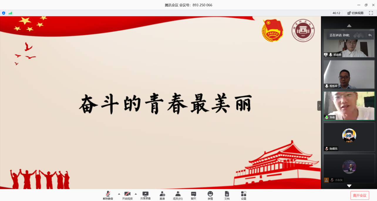 5月23日,地理科学学院团委在线上举办以“学习青年榜样,投身强国伟业”为主题的2020年“福建青年五四奖章”获奖者程栋梁教授事迹分享会。分享会以沙龙漫谈的方式进行。在采访中,程栋梁教授向同学们介绍了他的学习与科研经历,讲述了当时大学生在图书馆复印纸质版文献的故事;与同学们分享他的学术科研经验,鼓励同学们在交流与探索中明确研究方向,在钻研与积累中培养独立的科研能力,在勤奋与坚持中收获科研成果。活动中,程教授和同学们一同观看了《五四精神·传承有我》《后浪》等宣传片,与同学们积极互动。他勉励和鞭策同学们要有敢想的勇气,敢做的信心和敢当的使命感,投身祖国发展大业,在时代奔涌的河流中挥洒青春年华,激荡出最壮丽的浪花。