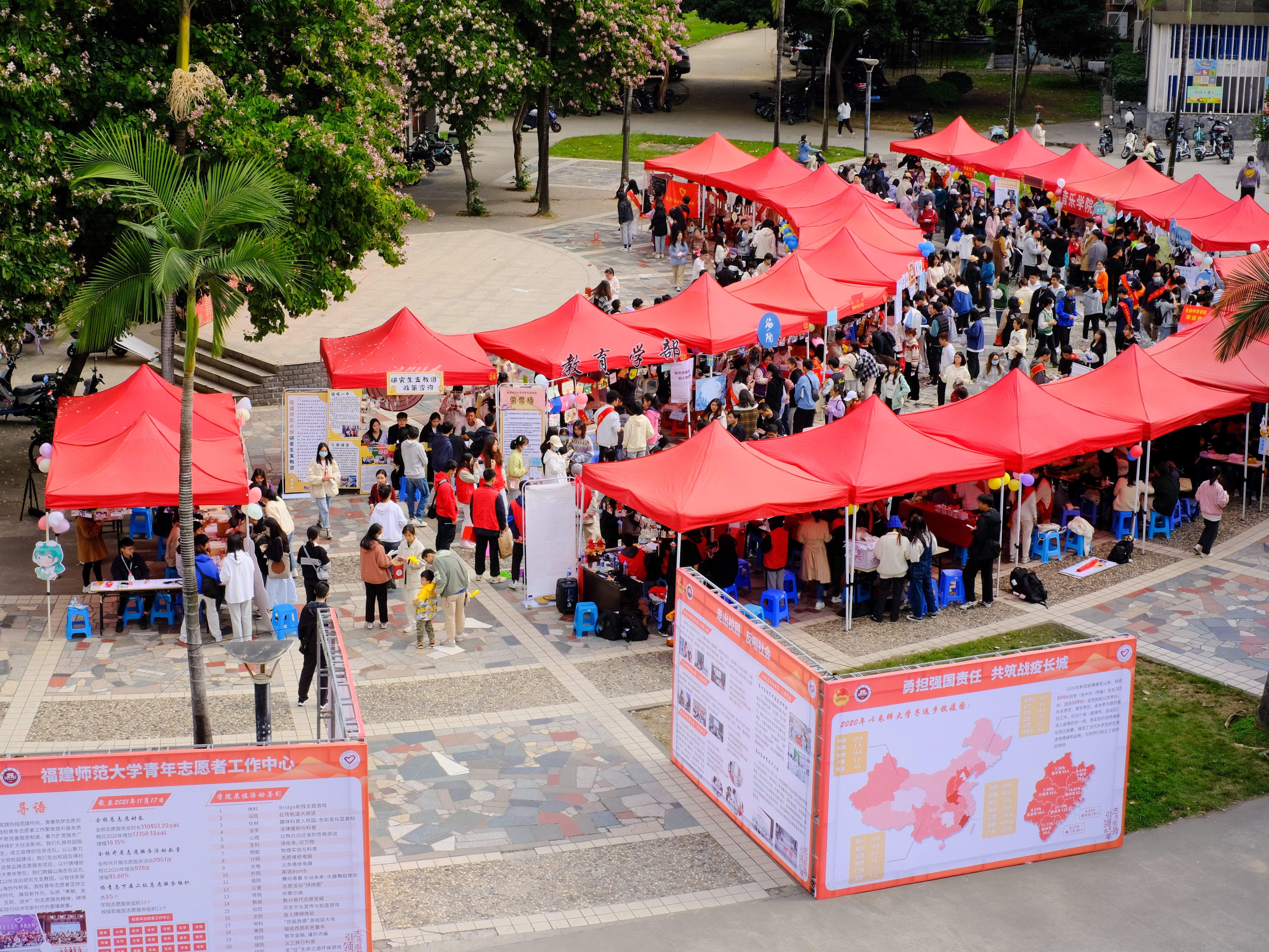 11月27日,我校深入学习贯彻十九届六中全会精神暨第十四届志愿服务成果展在共青团广场举行。本次成果展由校团委主办,校青年志愿者工作中心承办,共有来自23个学院的志愿服务组织参与设展,约1600名师生到场观摩学习。
