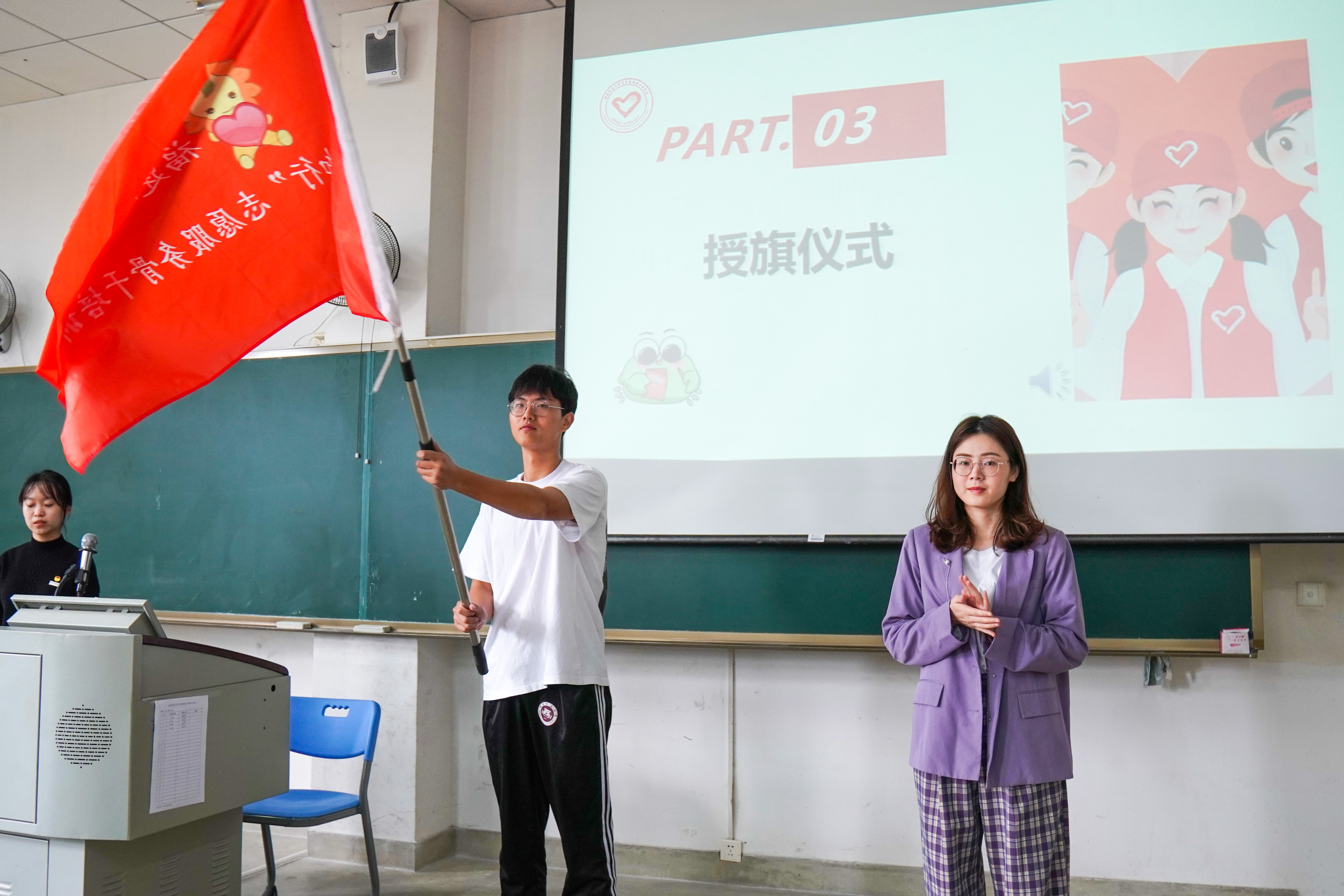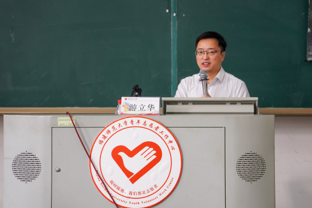 开班仪式上,进行了青年志愿者工作中心的负责人韦卓翔同学发言、志愿者代表薛方凝同学发言、谢静杨老师为此次“知行”志愿服务培训班授旗等环节。主持人王卓文先为我们介绍了此次的嘉宾,随后就培训班的创设目标、课程内容、管理制度与注意事项做了简要介绍。游立华老师为我们带来了本期“知行”培训班第一堂以“把握‘六个志愿’,推动深化发展”为主题的志愿服务课程。游立华老师亲历志愿服务条例从起草到出台的全过程,此次由他来向我们解读《福建省志愿服务条例》,阐述了发展历程。经过此次课程,强化了思想引领力、深化了项目品牌力、优化了项目品牌力、强化了资源推动力。