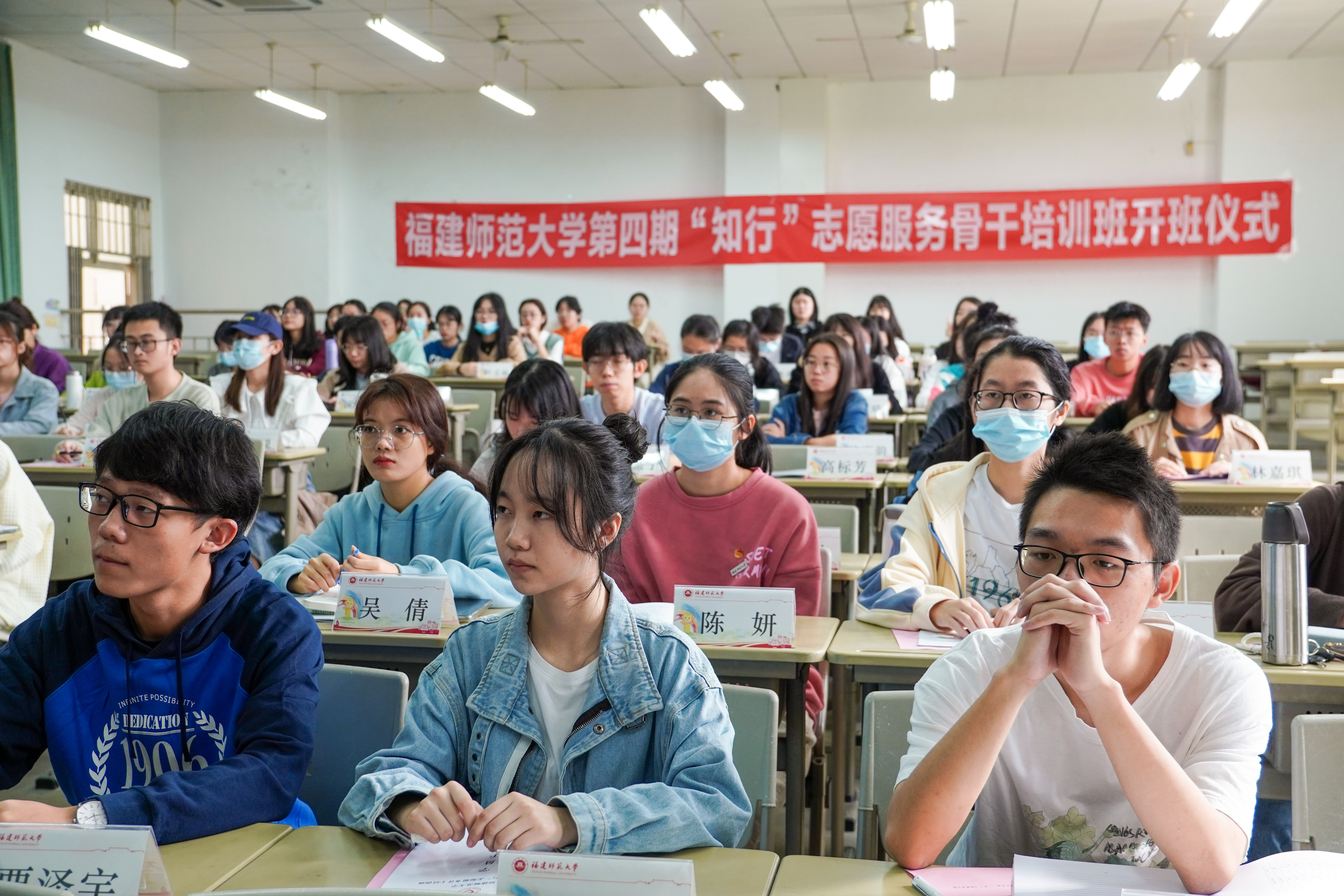 2021年10月31日上午,校第四期“知行”志愿服务骨干培训班开班仪式在福建师范大学旗山校区笃行楼举行。培训班由校团委主办,校青年志愿者工作中心承办,来自全校各学院及研究生支教团组成的多名骨干同学参与开班仪式。福建省志愿者协会副秘书长游立华和校团委谢静杨老师作为嘉宾出席。