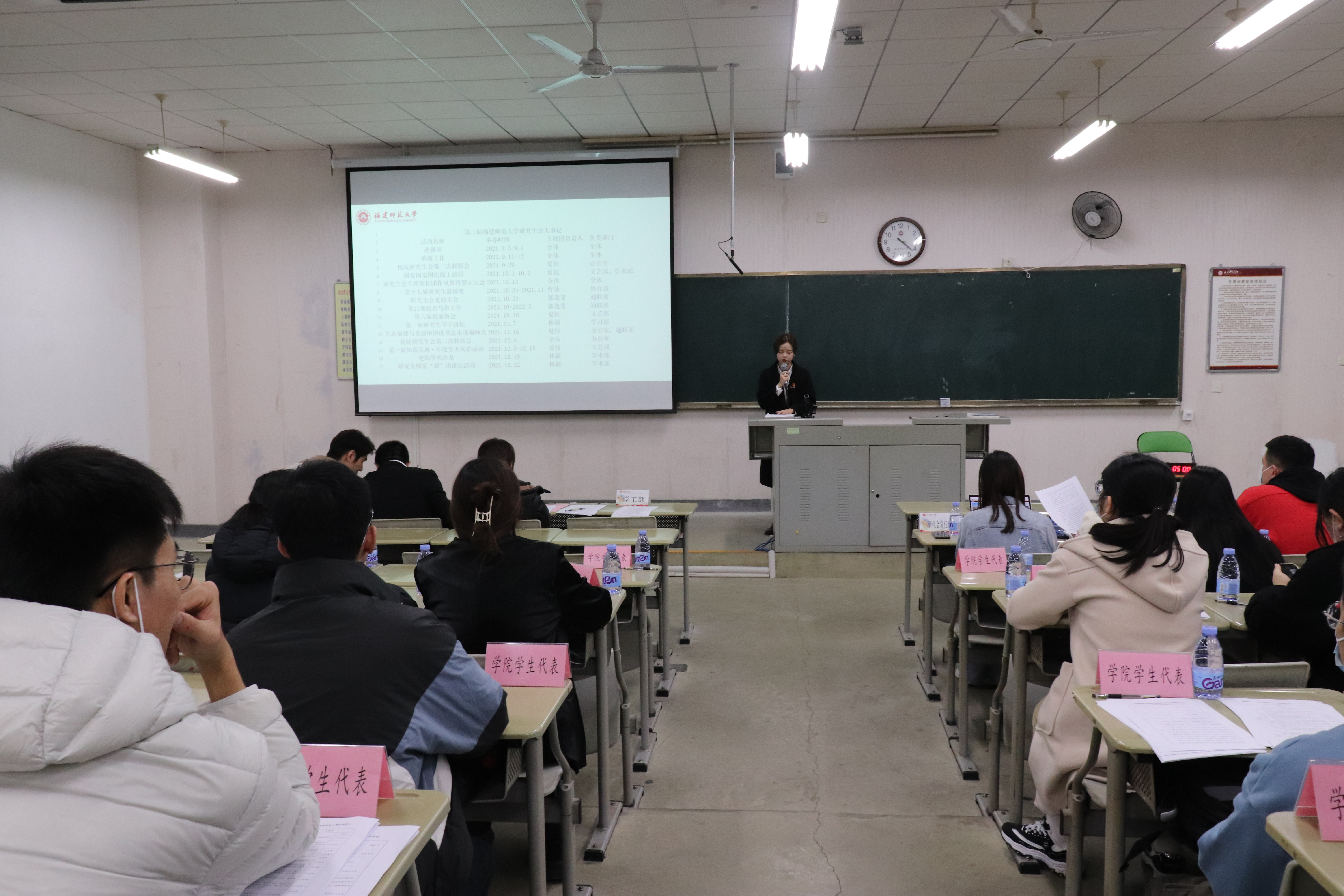 12月22日,校学生会、校研究生会召开2021—2022学年第一学期工作人员述职评议会议。学工部、校团委指导教师、第24次学代会常任代表以及来自各学院的学生代表参加评议。