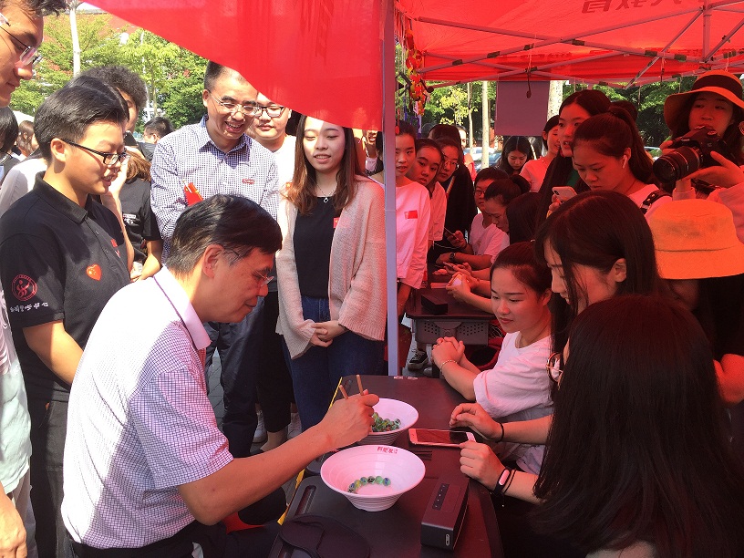 10月1日,校学生会联合校级学生组织、各学院学生会在仓山、旗山校区同时举行“奋进新时代谱写新华章”2018年国庆游园活动。校领导李宝银、郑家建,学校办公室、学工部(处)、研工部、保卫处、校团委等有关部门负责人,各学院学生工作负责人与师生们一同参加游园活动。