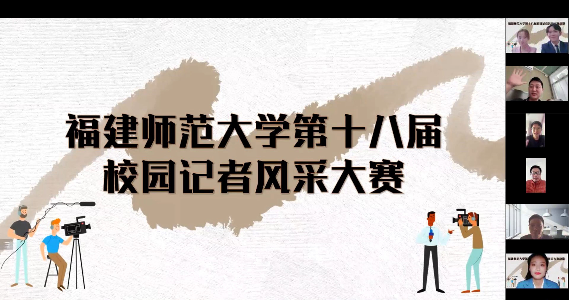 3月26日,由福建师范大学团委主办,校青年融媒体中心青年通讯社承办的第十八届校园记者风采大赛决赛举行。决赛现场邀请了新京报黄启鹏老师、澎湃新闻王选辉老师、中国新闻网吴晟炜老师、校党委宣传部乐华斌老师担任评委。