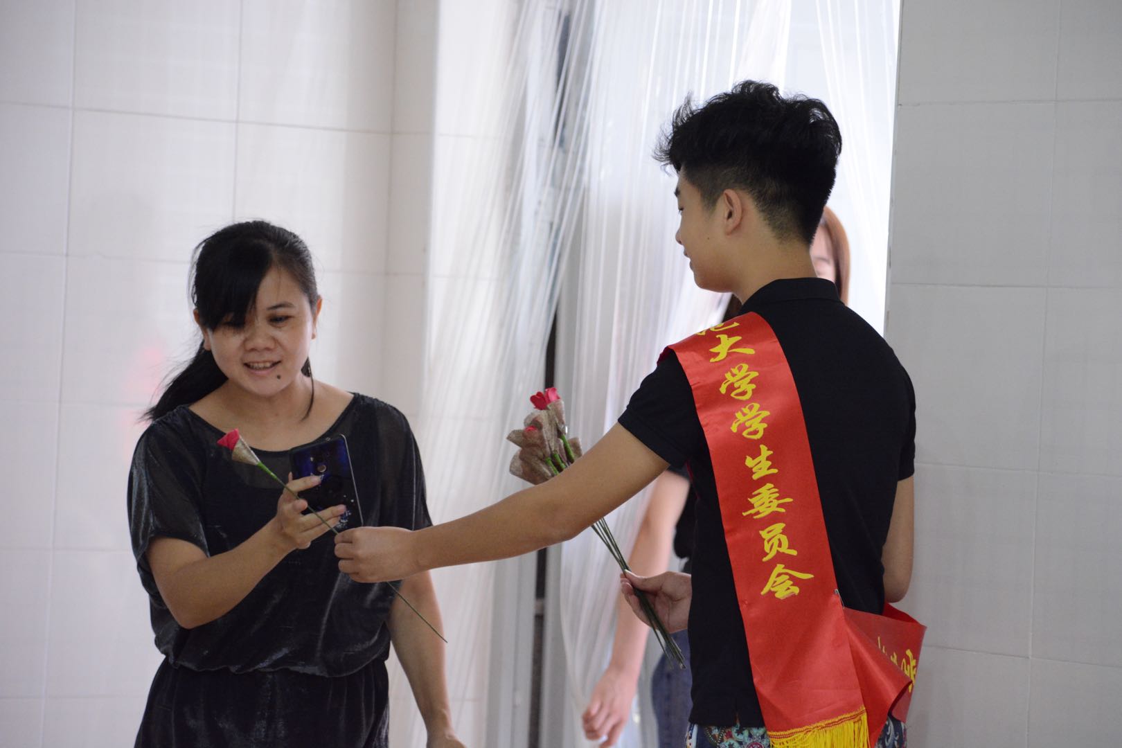 “饮其流者怀其源, 学其成时念吾师”。活动当天,同学们为老师献上了精美的贺卡及鲜花。还特制FM9.10—教师节校会点歌台,为默默付出的老师们送上一首歌曲。感谢老师的谆谆教诲,感谢老师的殷勤关怀,感谢老师的无私付出。