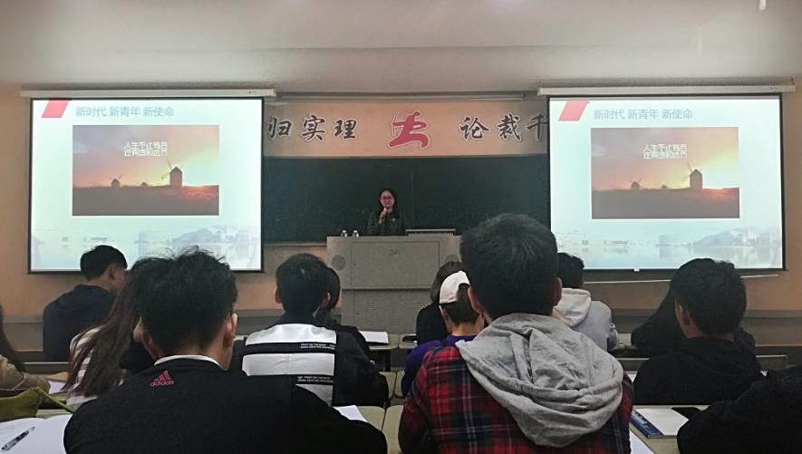 11月28日,由校学生会主办的第18期“青马工程”骨干培训班在致广楼名师讲堂开班。校团委副书记戴少娟作了《新时代 新青年 新使命》专题讲座。讲座由校学生会副主席杨青主持。