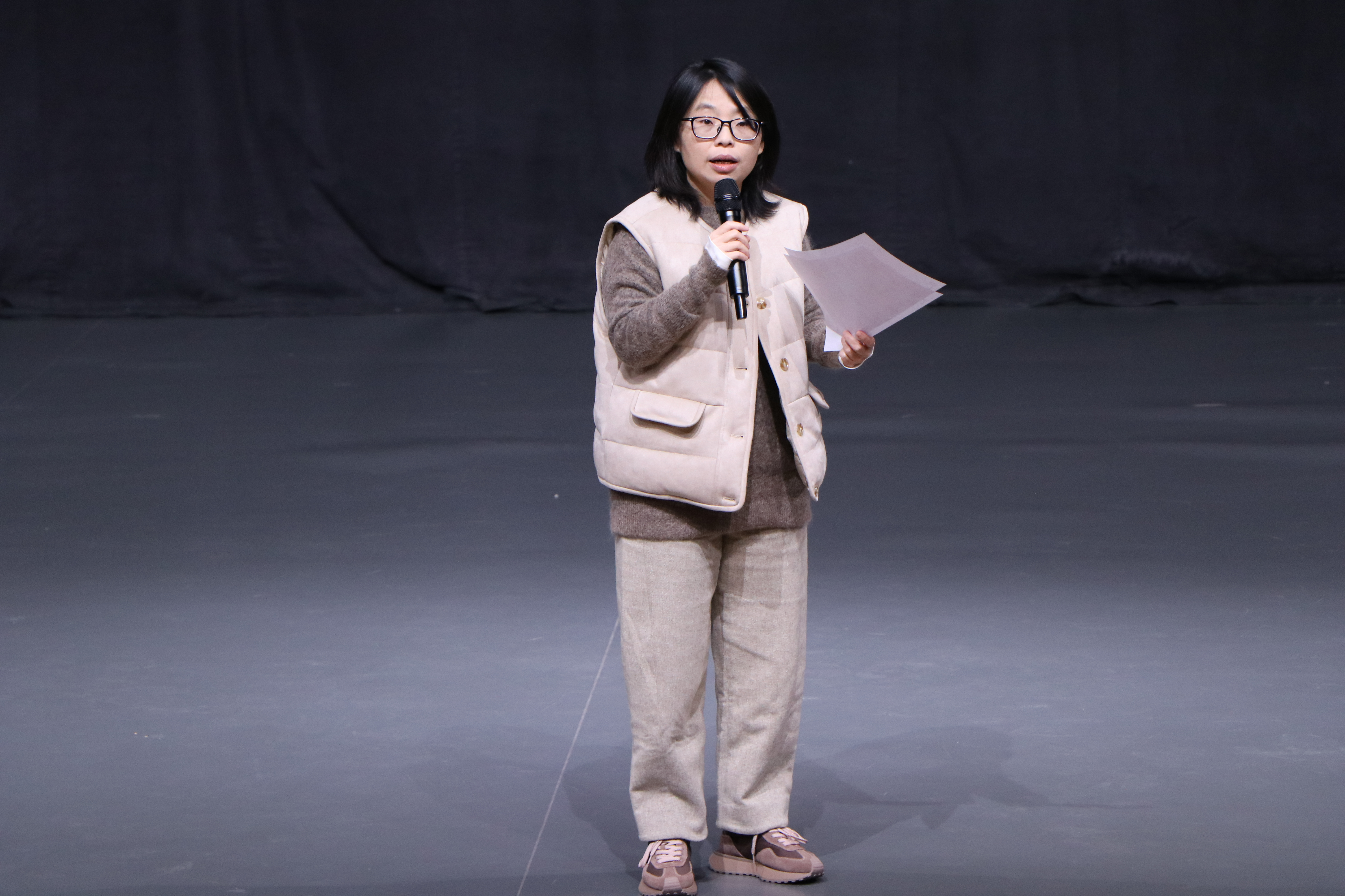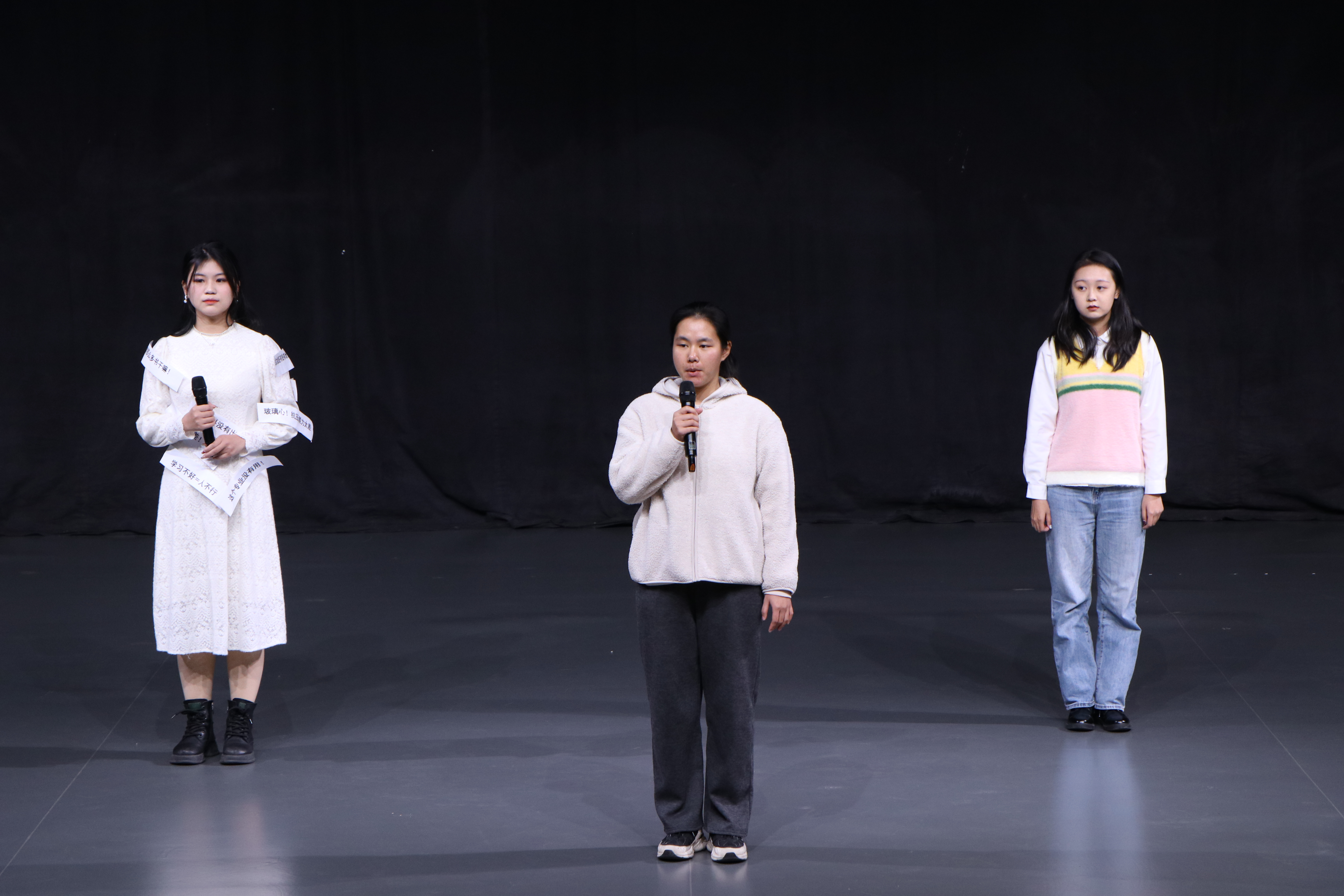 活动第二阶段,卢老师要求青马班学员们运用本次活动所学,与播音班同学共同完成一次演讲任务并展示。温林影、张佳欣等青马班学员在卢佳音老师的指导下,与传院学子在施学共楼演播厅进行演讲成果展示。主讲老师卢佳音老师强调了演讲要着重于“真听,真看,真感受”,在演讲实战演练中,青马班学员与传院学子组成小组,共同完成三分钟演讲。