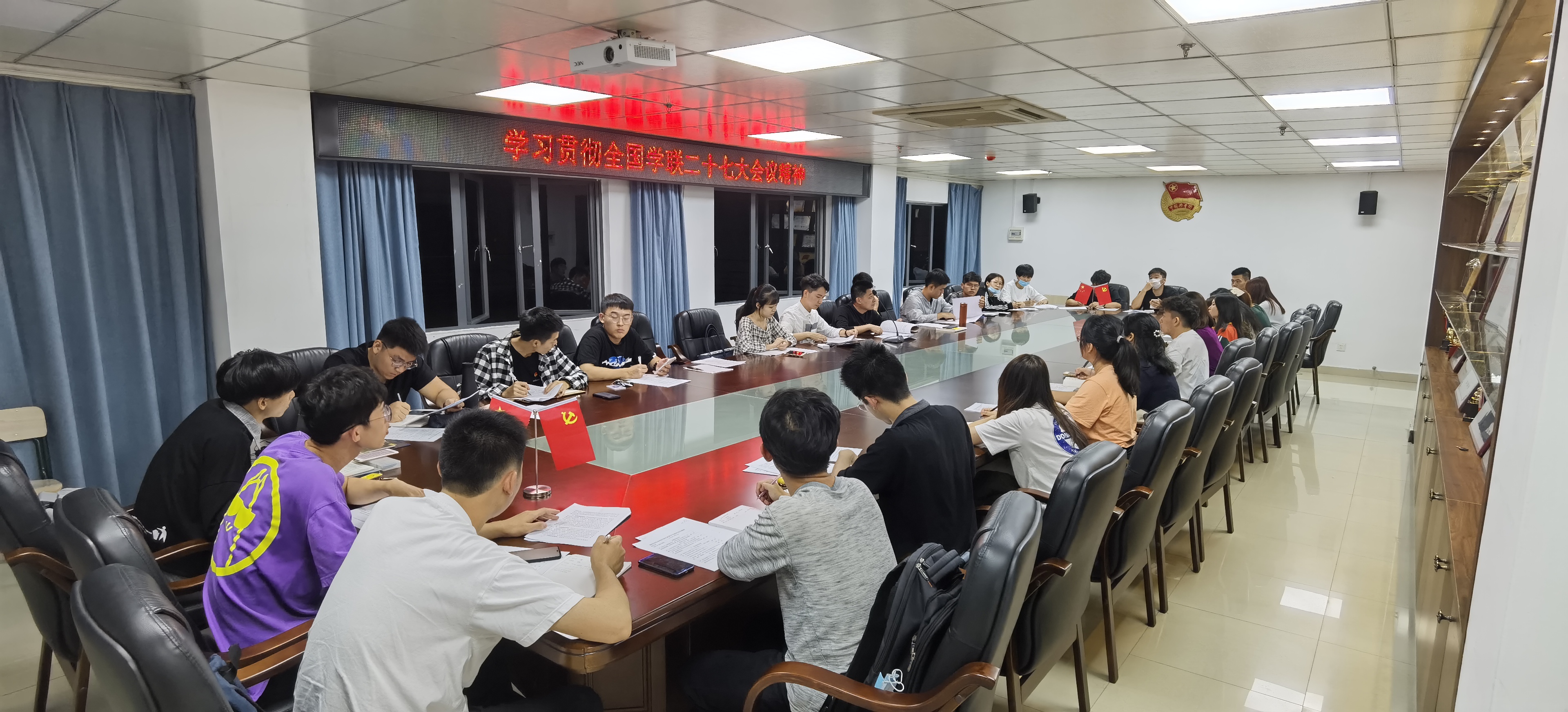为深入学习贯彻习近平总书记致全国青联十三届全委会和全国学联二十七大的贺信精神,全面贯彻落实全国学联二十七大会议精神,10月5日晚,校学生委员会组织各学院学生会学习全国学联二十七大会议精神。